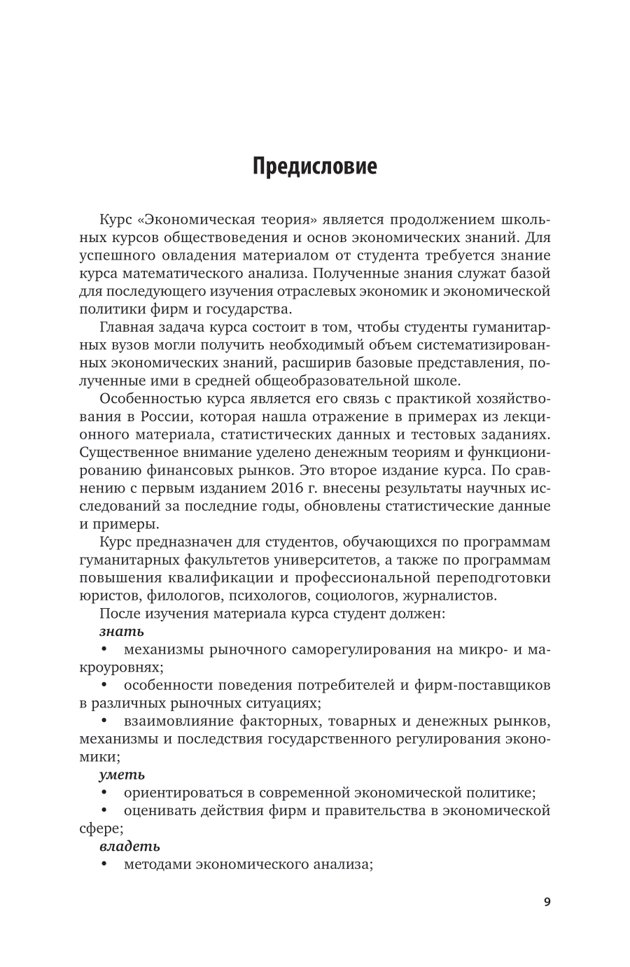 Данный курс призван помочь студентам гуманитарных вузов получить необходимый объем систематизированных экономических знаний, расширив базовые представления, полученные в средней общеобразовательной школе. Особенностью курса является его связь с практикой хозяйствования в России. Существенное внимание уделено денежным теориям и функционированию финансовых рынков. Соответствует актуальным требованиям федерального государственного образовательного стандарта высшего образования. Курс предназначен для студентов гуманитарных факультетов университетов, а также для обучающихся по программам повышения квалификации и профессиональной переподготовки юристов, филологов, психологов, социологов, политологов, журналистов.