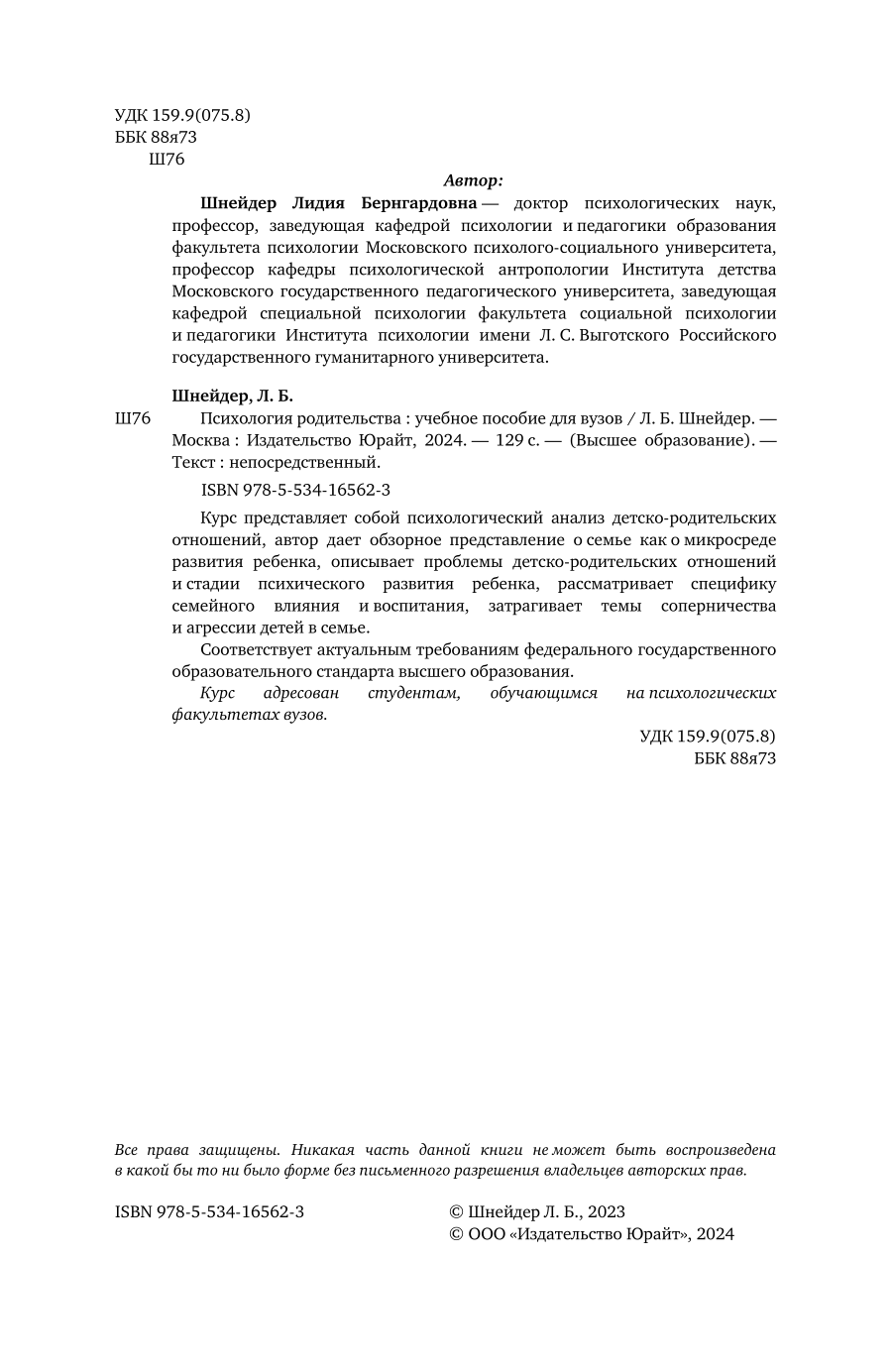 Психология родительства. Учебное пособие для вузов (Лидия Бернгардовна Шнейдер); ЮРАЙТ, 2023