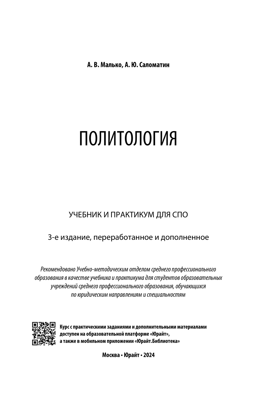 Политология 3-е изд. пер. и доп. Учебник и практикум для СПО (Алексей Юрьевич Саломатин); ЮРАЙТ, 2023