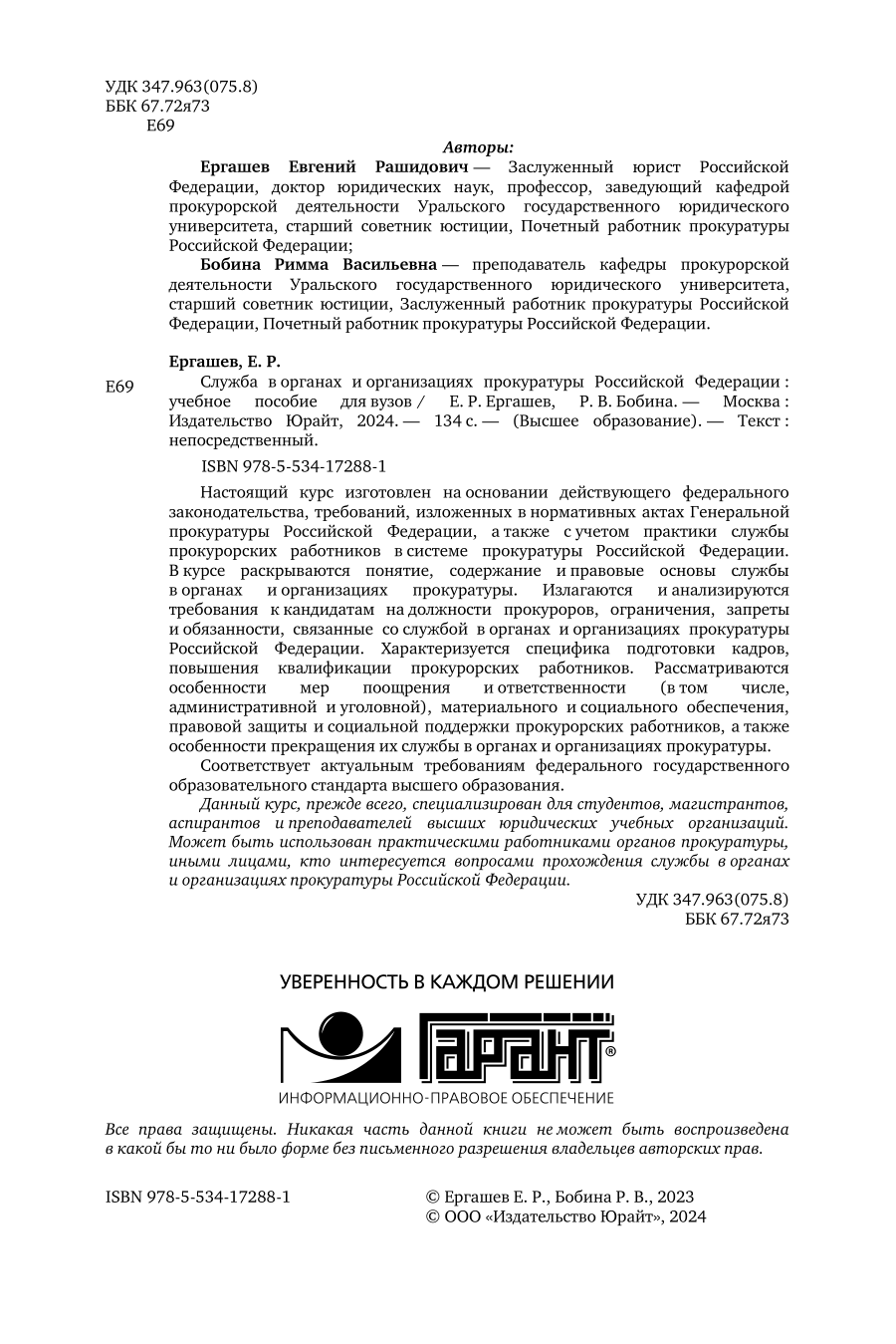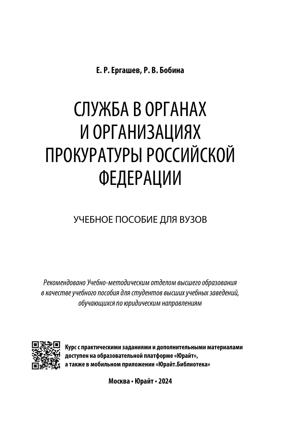 Служба в органах и организациях прокуратуры Российской Федерации. Учебное пособие для вузов (Евгений Рашидович Ергашев); ЮРАЙТ, 2023