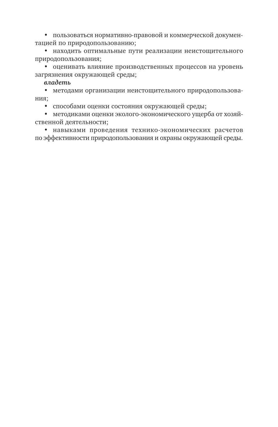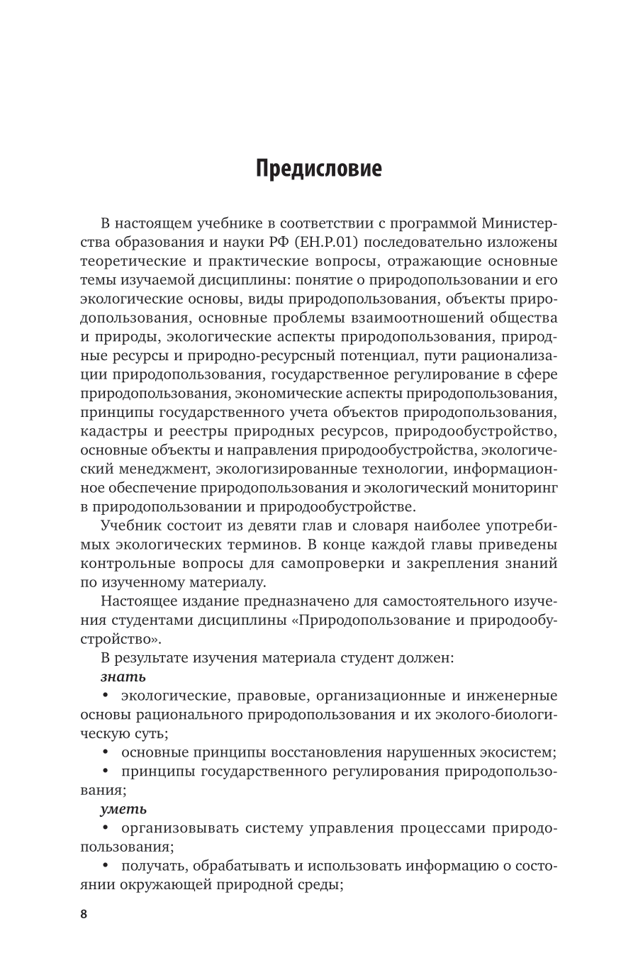 Учебник представляет собой комплекс знаний в области природопользования, охраны окружающей среды, общей экологии, экологического менеджмента и экологического права. Рассматриваются теоретические аспекты взаимоотношений организмов с окружающей средой, вопросы организации и функционирования естественных экосистем и техноценозов, структура биосферы и факторы, определяющие ее устойчивость, основные положения по регулированию отношений природы и общества. Изложены вопросы оценки и прогнозирования состояния окружающей среды. В конце каждой главы приведены контрольные вопросы для самопроверки и закрепления знаний по изученному материалу. Соответствует актуальным требованиям федерального государственного образовательного стандарта высшего образования. Для студентов высших учебных заведений, обучающихся по специальностям «Менеджмент», профиль «Экологический менеджмент»; «Экономика», профиль «Экономика предприятий и организаций (экономика природопользования)»