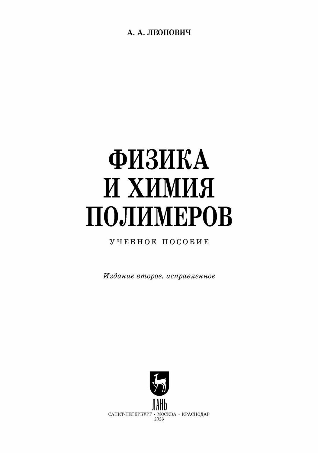 Физика и химия полимеров. Учебное пособие для вузов (А. А. Леонович); Издательство ЛАНЬ, 2023
