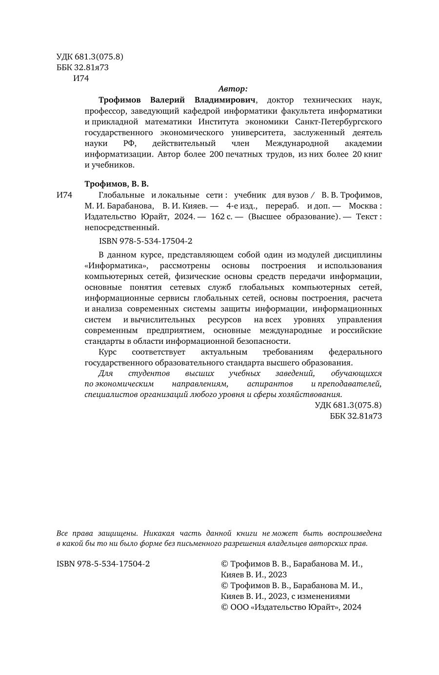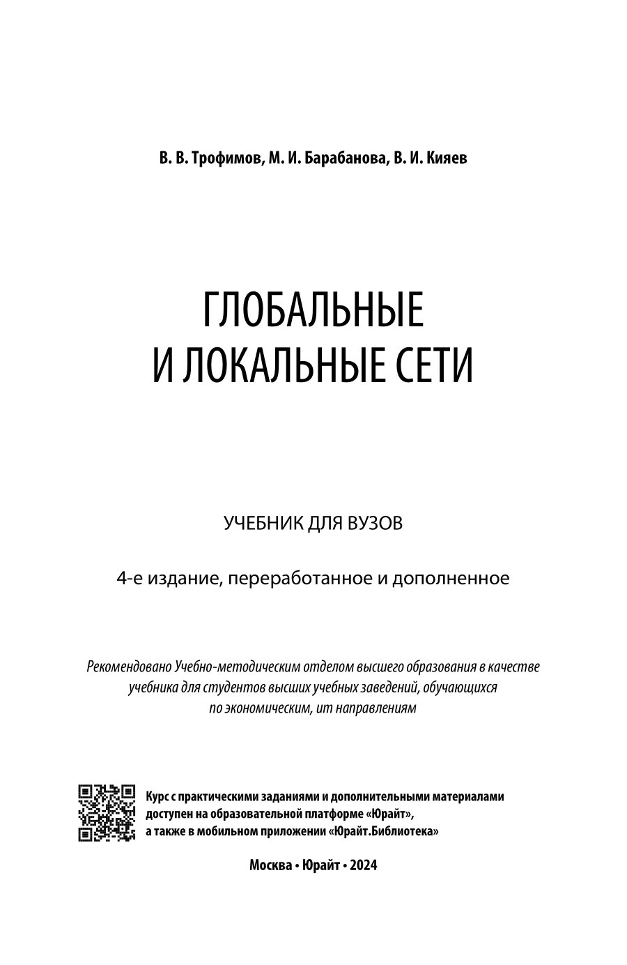 Глобальные и локальные сети 4-е изд. пер. и доп. Учебник для вузов (Валерий Владимирович Трофимов); ЮРАЙТ, 2023