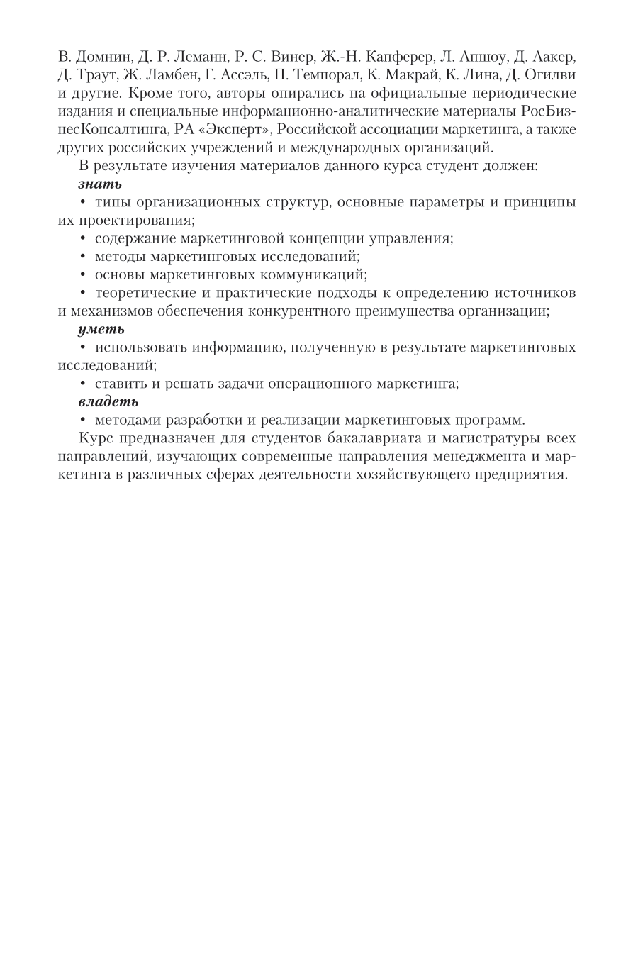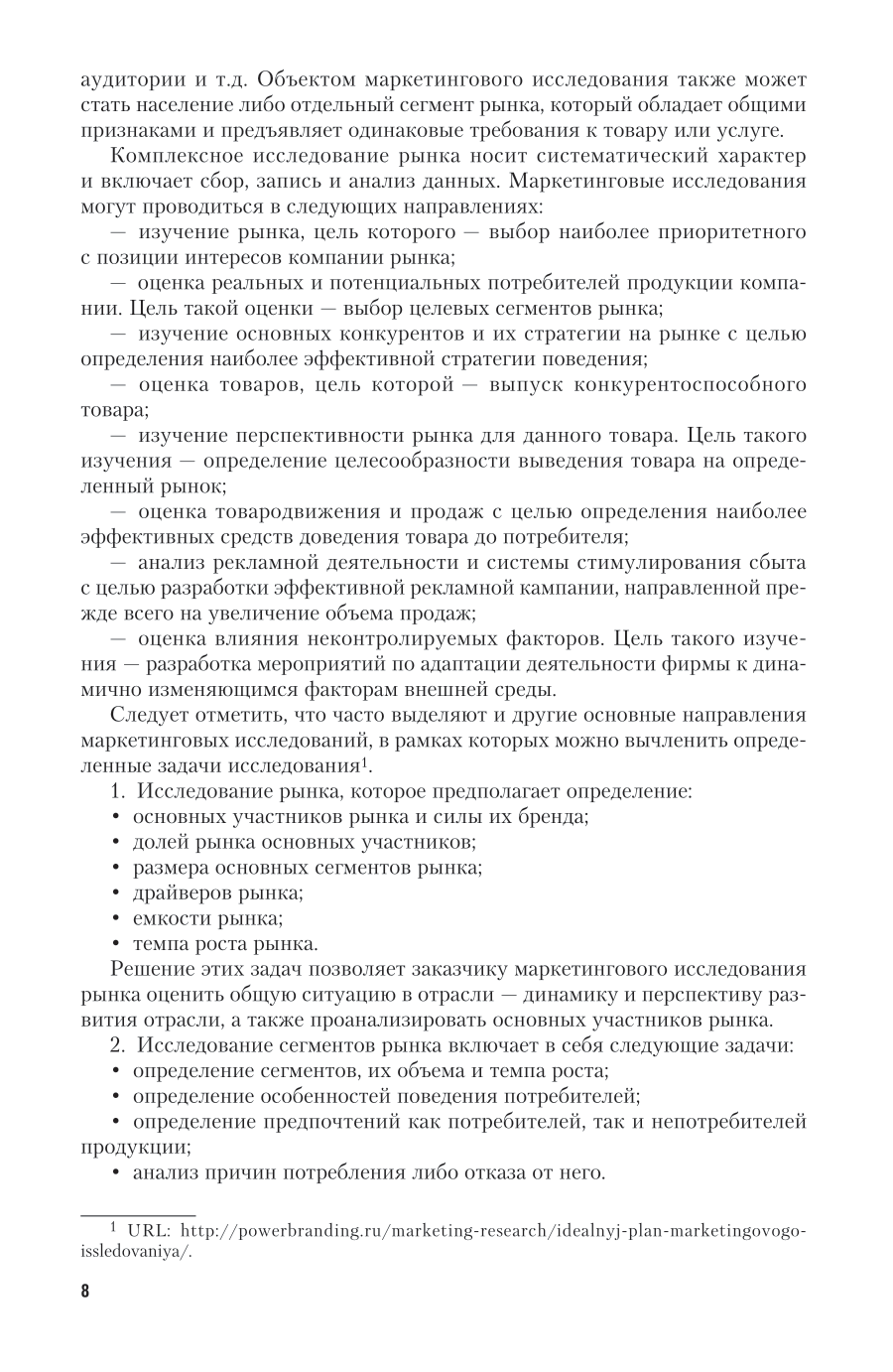 В курсе рассматриваются теоретические основы маркетинговых исследований и их основные направления, детально проанализирован процесс реализации маркетингового исследования, дана подробная характеристика основным методам проведения маркетингового исследования. Особое внимание уделено маркетинговому исследованию конкурентной среды и потребителей, а также макросреды компании. Содержание курса соответствует последним требованиям федерального государственного образовательного стандарта высшего образования. Для студентов высших учебных заведений экономического профиля, аспирантов, преподавателей, а также практических работников в сфере маркетинга и менеджмента.