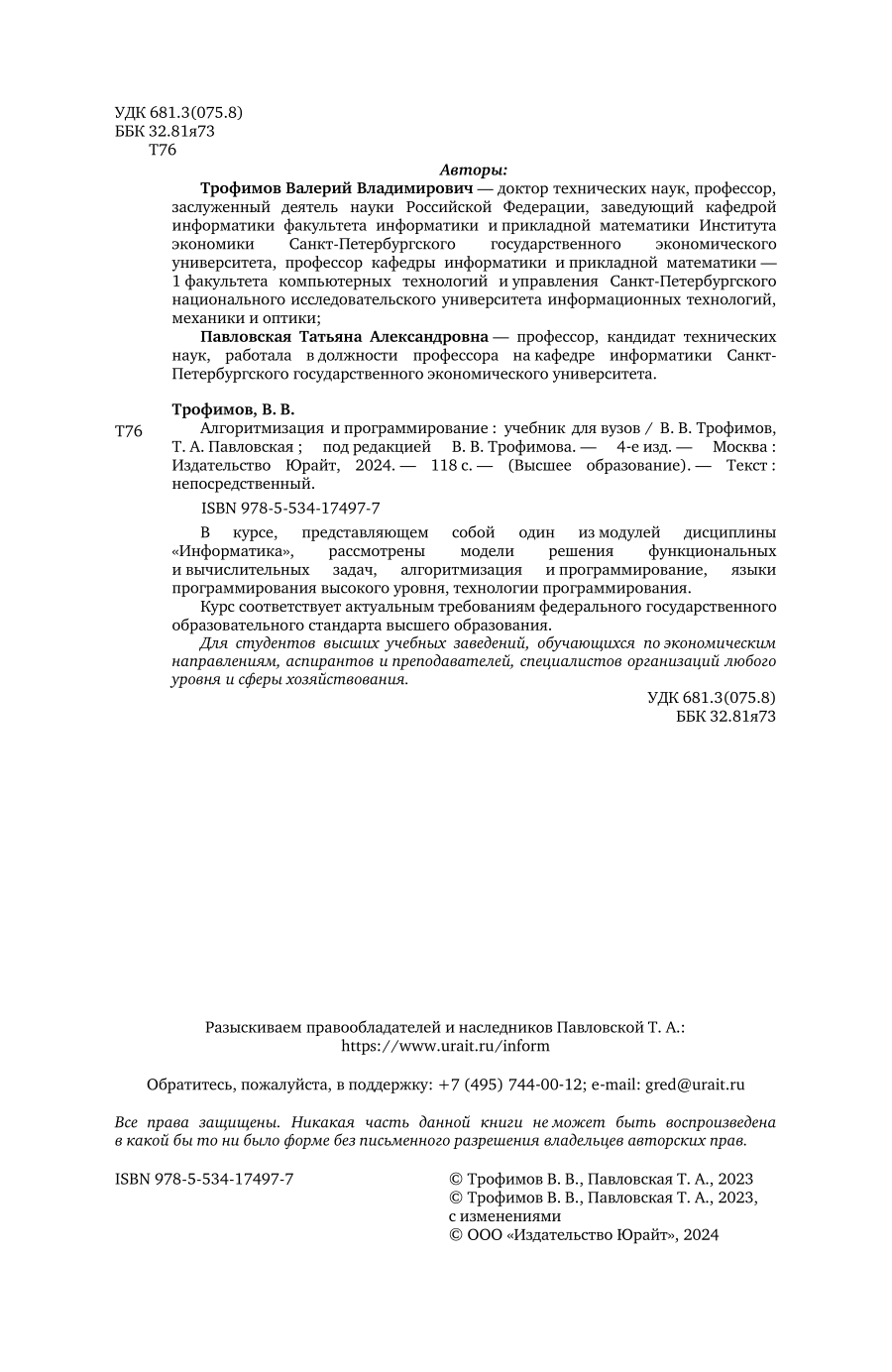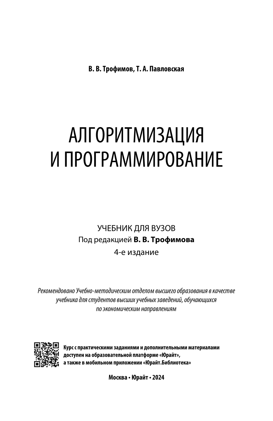 Алгоритмизация и программирование 4-е изд. Учебник для вузов (Валерий Владимирович Трофимов); ЮРАЙТ, 2023