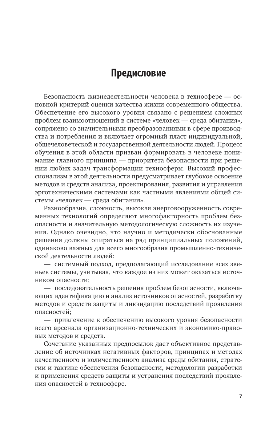 В четвертом издании курса обобщены научные и практические достижения в области безопасности жизнедеятельности в техносфере. Значительное внимание уделено методам идентификации опасностей техносферы, оценке их влияния на человека, средствам и способам создания безопасных технических систем и технологий, защите населения и объектов экономики в чрезвычайных ситуациях, а также организационно-правовым и экономическим аспектам безопасности жизнедеятельности. Обновлены ссылки на законодательные и нормативные документы, добавлены иллюстративный материал и расчетные задачи с примерами решений. Соответствует актуальным требованиям федерального государственного образовательного стандарта среднего профессионального образования и профессиональным требованиям. Для студентов образовательных учреждений среднего профессионального образования, обучающихся по всем направлениям.