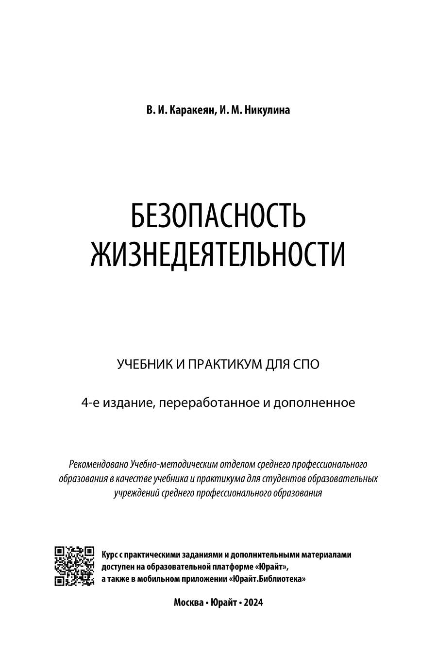 Безопасность жизнедеятельности 4-е изд. пер. и доп. Учебник и практикум для СПО (Ирина Михайловна Никулина); ЮРАЙТ, 2023