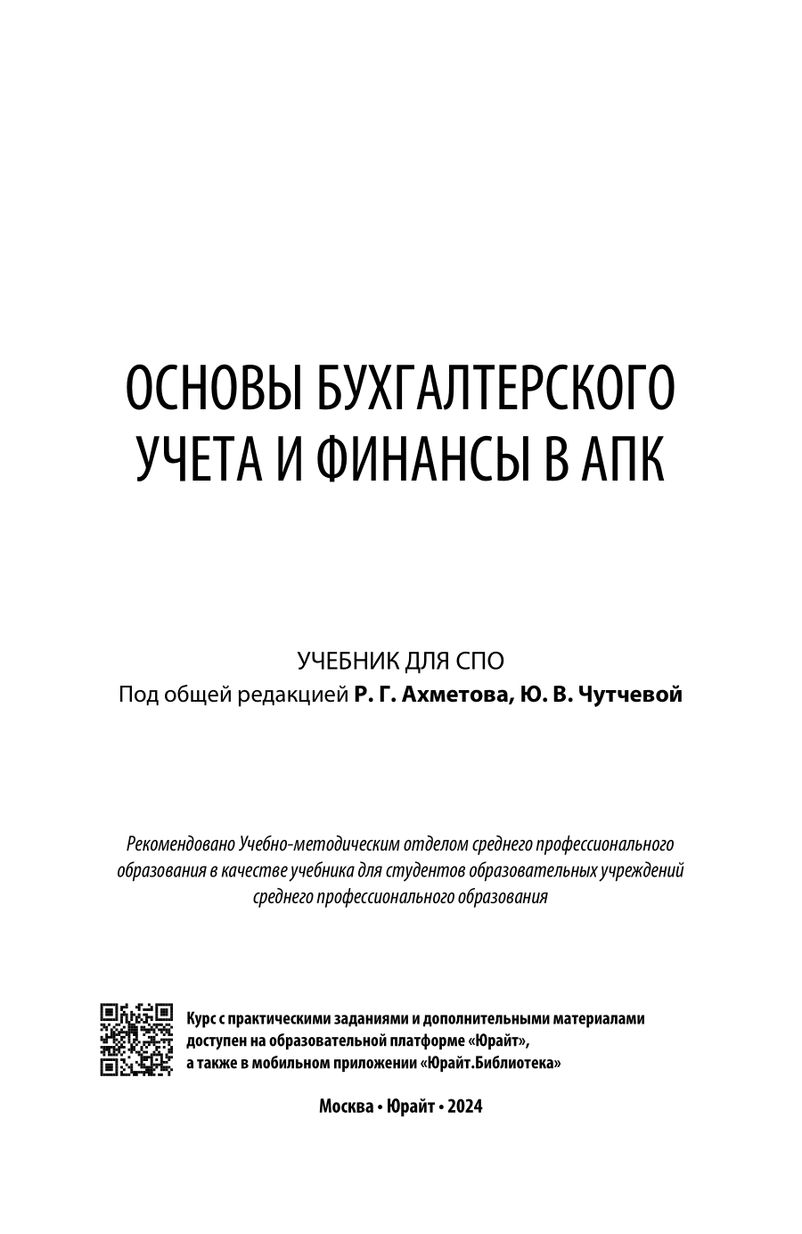 Основы бухгалтерского учета и финансы в апк. Учебник для СПО (Юлия Васильевна Чутчева); ЮРАЙТ, 2023