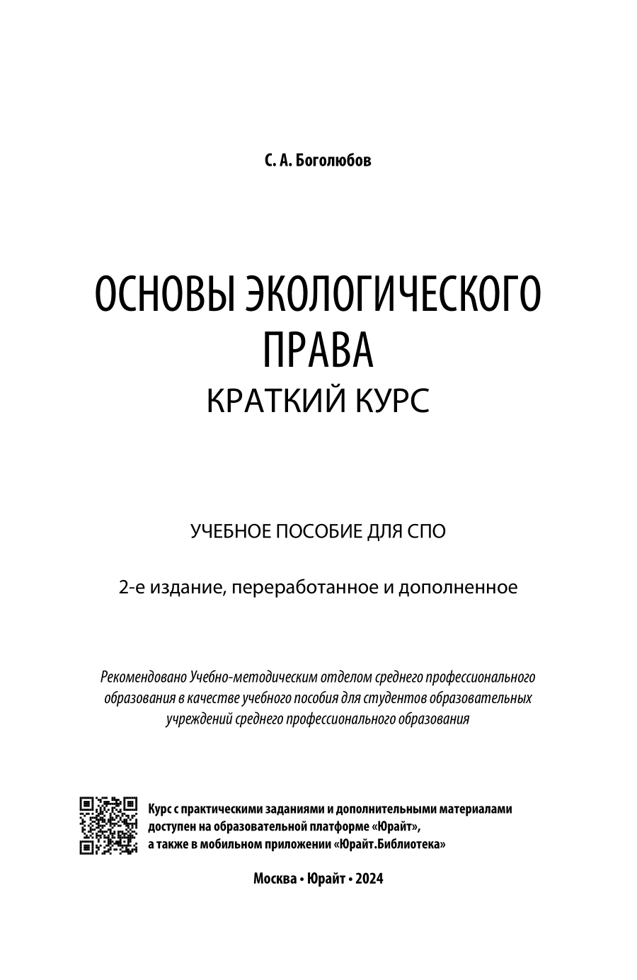 Основы экологического права. Краткий курс 2-е изд. пер. и доп. Учебное пособие для СПО (Сергей Александрович Боголюбов); ЮРАЙТ, 2023