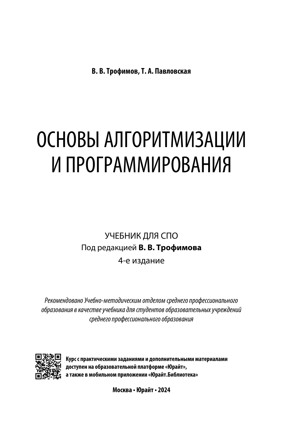 Основы алгоритмизации и программирования 4-е изд. Учебник для СПО (Валерий Владимирович Трофимов); ЮРАЙТ, 2023