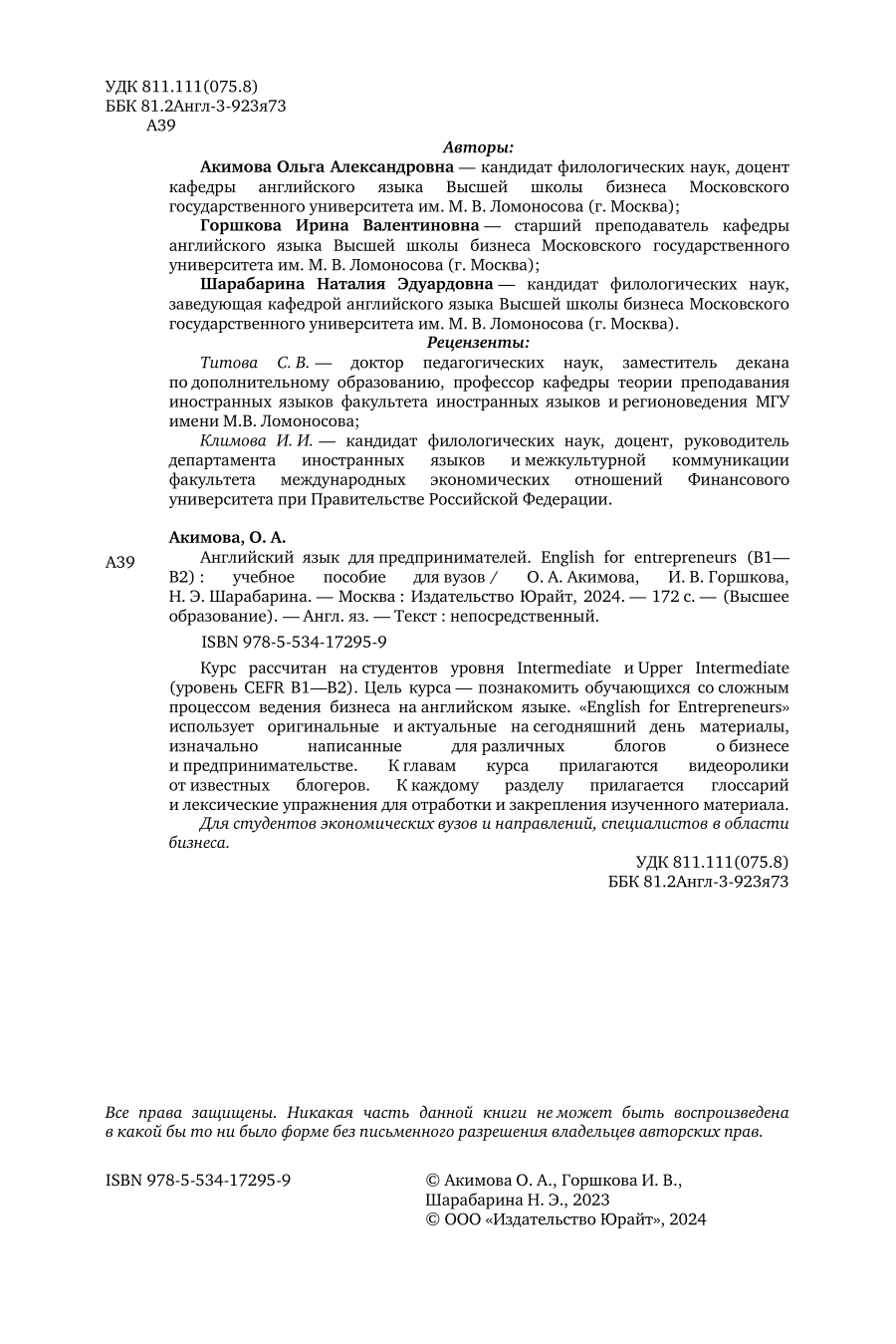 Английский язык для предпринимателей. English for entrepreneurs (B1-B2). Учебное пособие для вузов (Акимова Ольга Александровна, Горшкова Ирина Валентиновна, Шарабарина Наталия Эдуардовна), 2023