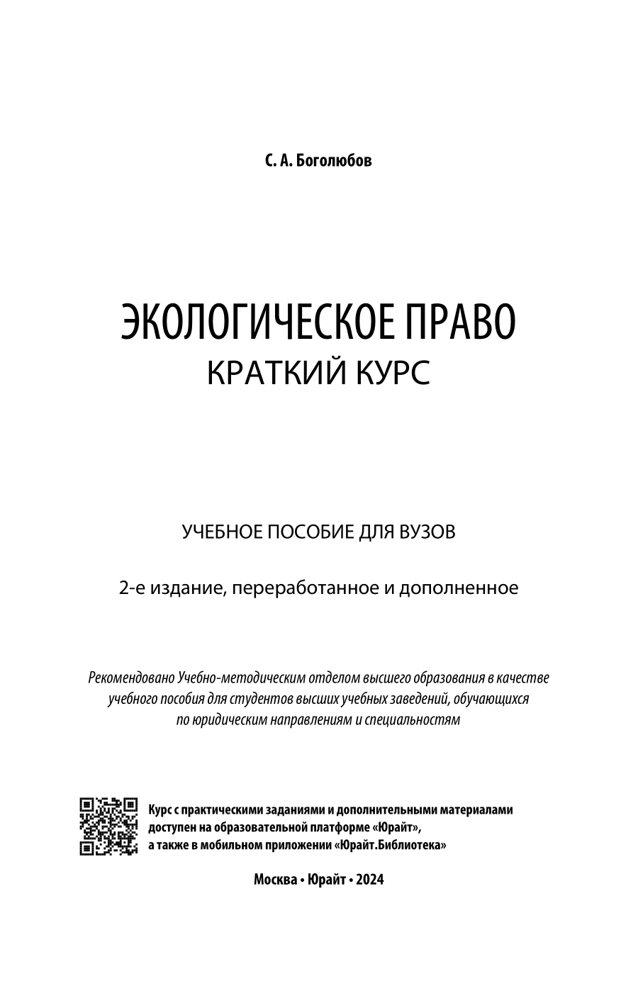 Экологическое право. Краткий курс 2-е изд. пер. и доп. Учебное пособие для вузов (Сергей Александрович Боголюбов); ЮРАЙТ, 2023
