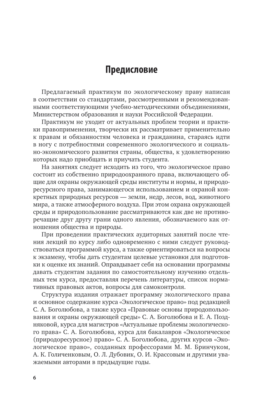 Представленные в практикуме вводные положения, задачи, вопросы и задания для самостоятельной работы обеспечивают методическую и научную преемственность в получении навыков и умений на основе теоретических знаний по экологическому праву. Ко всем темам приводится перечень необходимых нормативных актов. В издание включены также примерные темы курсовых работ и рефератов, вопросы для экзаменов, даются рекомендации по проведению круглых столов, конференций и диспутов. Издание включает наиболее важные вопросы экологического права, является логическим продолжением курса «Экологическое право» под редакцией С. А. Боголюбова. Соответствует актуальным требованиям федерального государственного образовательного стандарта высшего образования. Для студентов академического бакалавриата, а также магистров, аспирантов, преподавателей юридических вузов, юристов-практиков, предпринимателей, а также других граждан, намеренных получать экологическую информацию и защищать свои права на благоприятную окружающую среду.