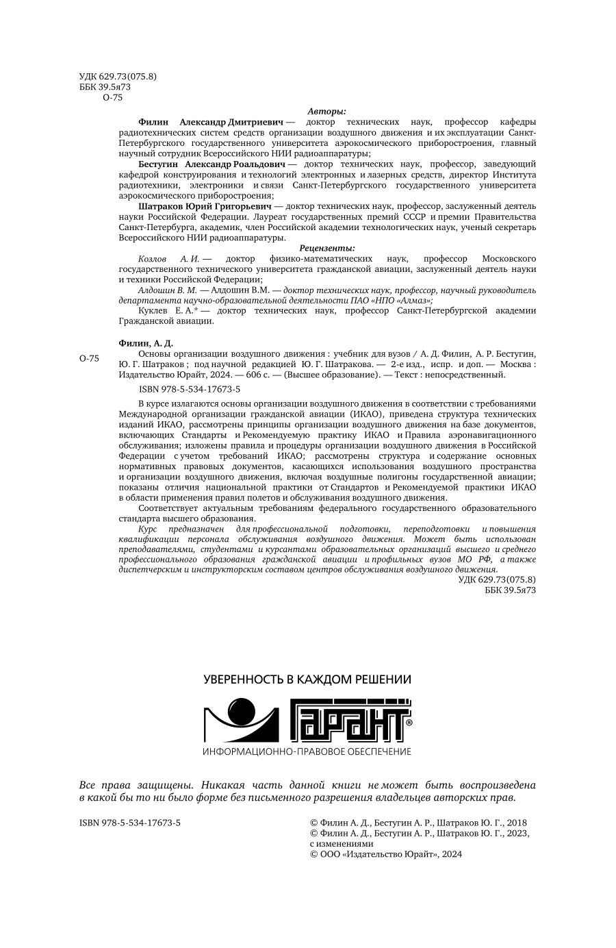 Основы организации воздушного движения 2-е изд. испр. и доп. Учебник для вузов (Филин Александр Дмитриевич; Бестугин Александр Роальдович; Шатраков Юрий Григорьевич), 2024