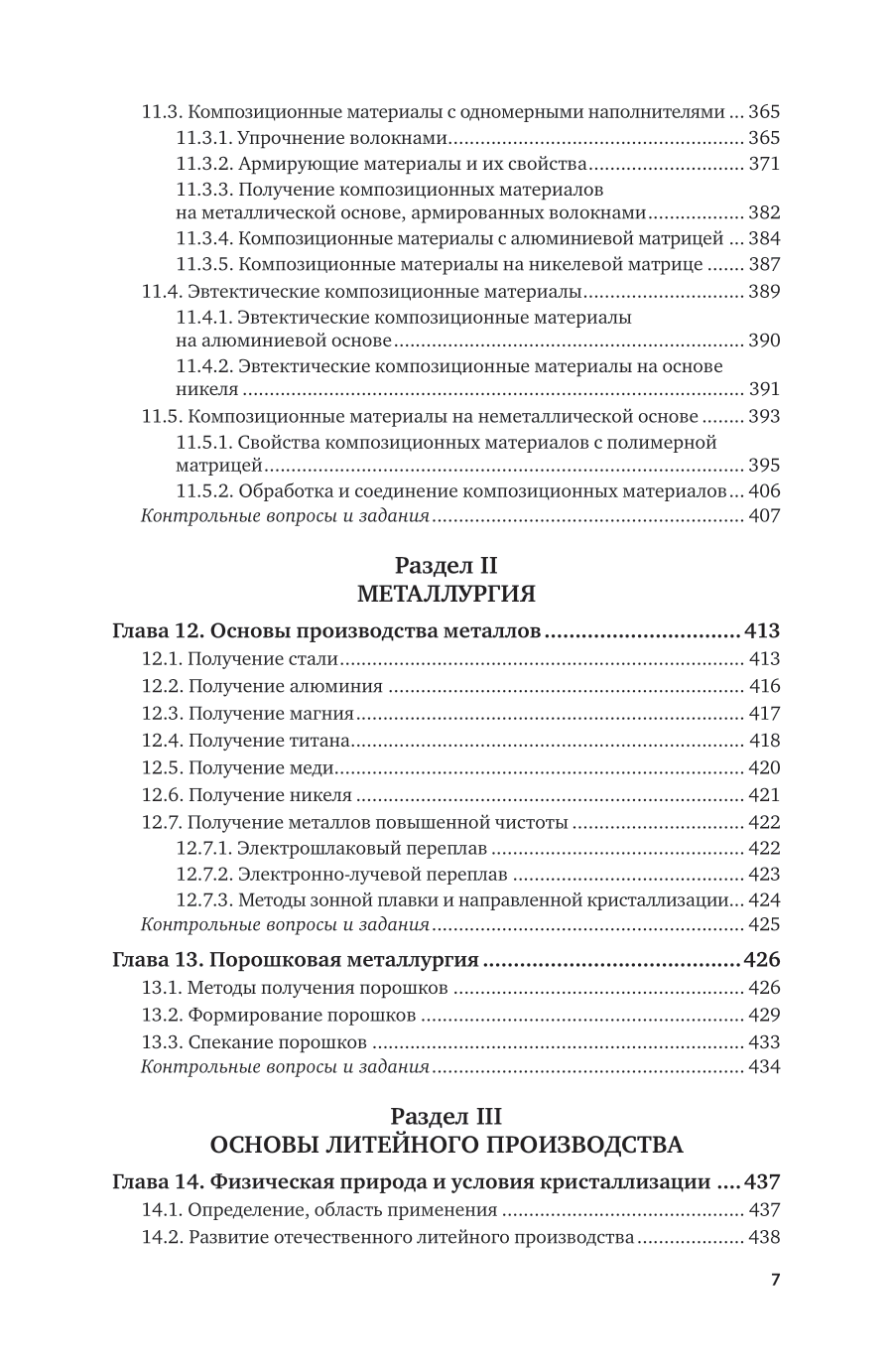 В учебнике представлены основные вопросы физико-химического строения металлов и сплавов, неметаллических и композиционных материалов. Представленные в конце глав задания помогут обучающимся проверить качество усвоения теоретического материала. Учебник состоит из двух частей. В первой части раскрывается базовая теория. В нем изложены все основы дисциплины, в ней также отражены вопросы кристаллического строения металлов и сплавов, их поведения в особых условиях. Во второй части большое внимание уделено технологическим процессам создания материалов, среди которых металлургия, основы литейного производства, обработка металлов давлением, сварка и пайка металлов и др., раскрываются аспекты создания материалов с более лучшими реологическими свойствами.
