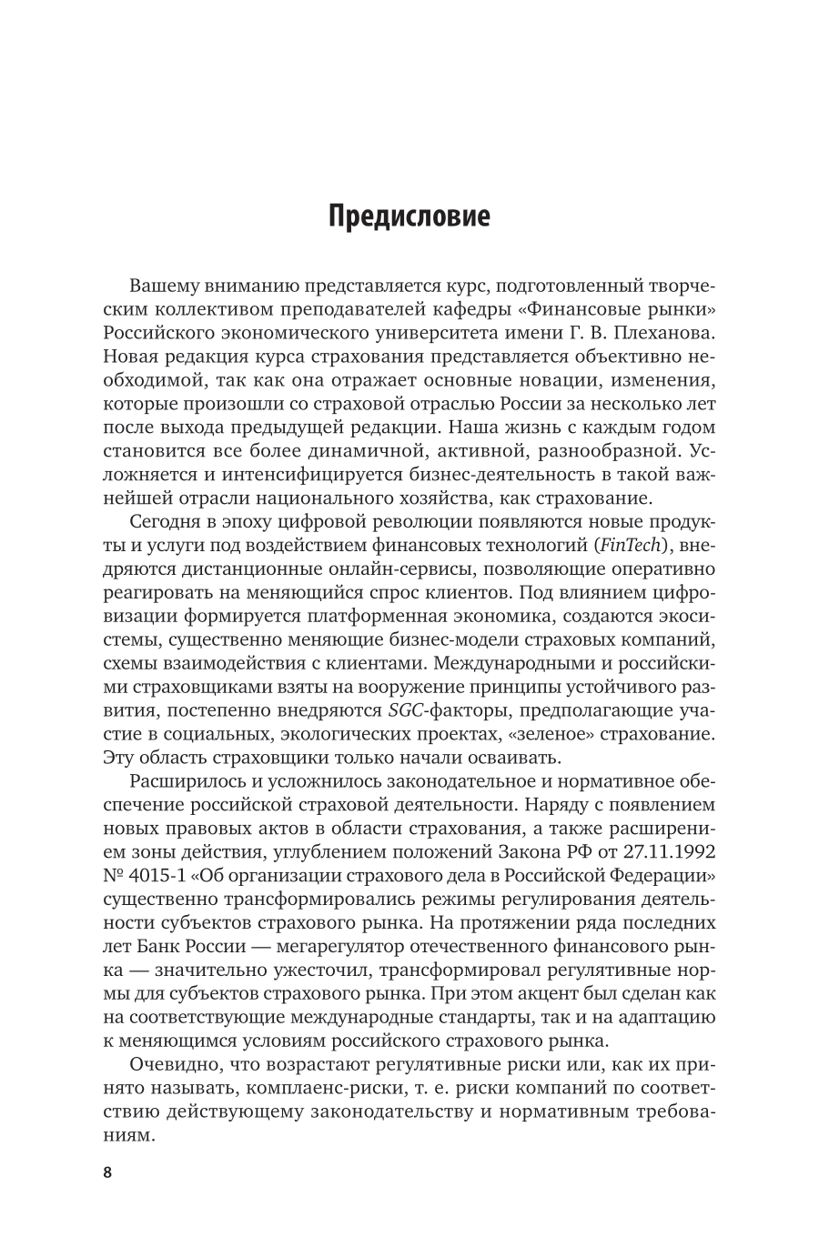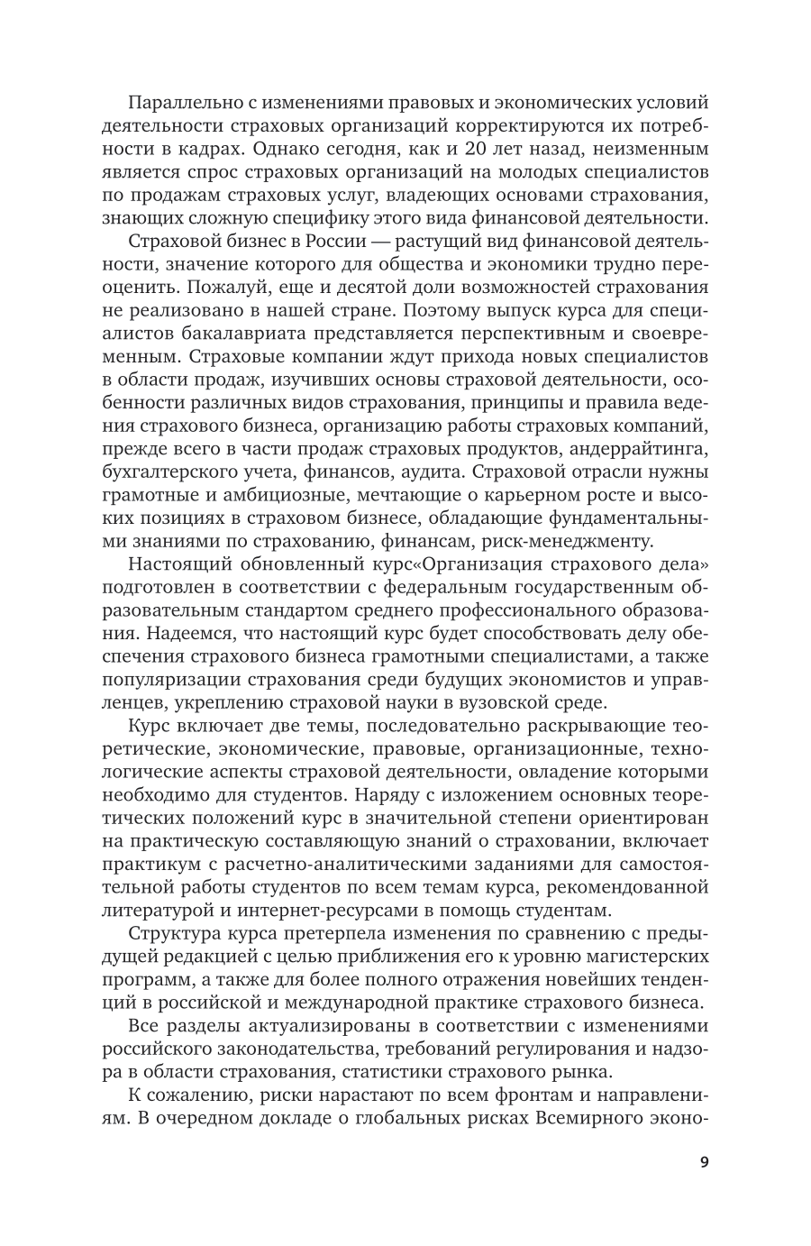 В издании раскрыты основные аспекты организации деятельности страховых компаний. Последовательно изложено содержание основных бизнес-процессов страхования и особенности законодательного регулирования различных видов страхования на российском страховом рынке. Рассмотрены особенности финансового менеджмента и налогообложения деятельности страховых организаций. Курс включает практикум с расчетными аналитическими заданиями для самостоятельной работы студентов. Соответствует актуальным требованиям федерального государственного образовательного стандарта среднего профессионального образования и профессиональным требованиям. Для студентов образовательных учреждений среднего профессионального образования, обучающихся по специальности «Страховое дело».