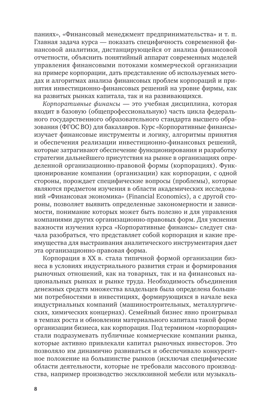 Курс раскрывает принципы и логику построения финансовой политики компании, подходы к разработке финансовой стратегии. В темах показана специфичность современной финансовой аналитики, объяснен понятийный аппарат современных моделей управления финансовыми потоками коммерческой организации на примере корпорации, описаны используемые методы и алгоритмы анализа финансовых проблем корпораций, принятия инвестиционно-финансовых решений на уровне фирмы как на развитых рынках капитала, так и на развивающихся. Основной акцент сделан на разграничении двух аналитических моделей анализа компании учетной (бухгалтерской) и стоимостной (финансовой, инвестиционной). Контрольные вопросы, примеры решения задач, основные термины помогут студентам закрепить полученные знания и применить их в области анализа и управления денежными потоками и капиталом на уровне фирмы. Соответствует актуальным требованиям федерального государственного образовательного стандарта высшего образования. Для студентов учреждений высшего профессионального образования.