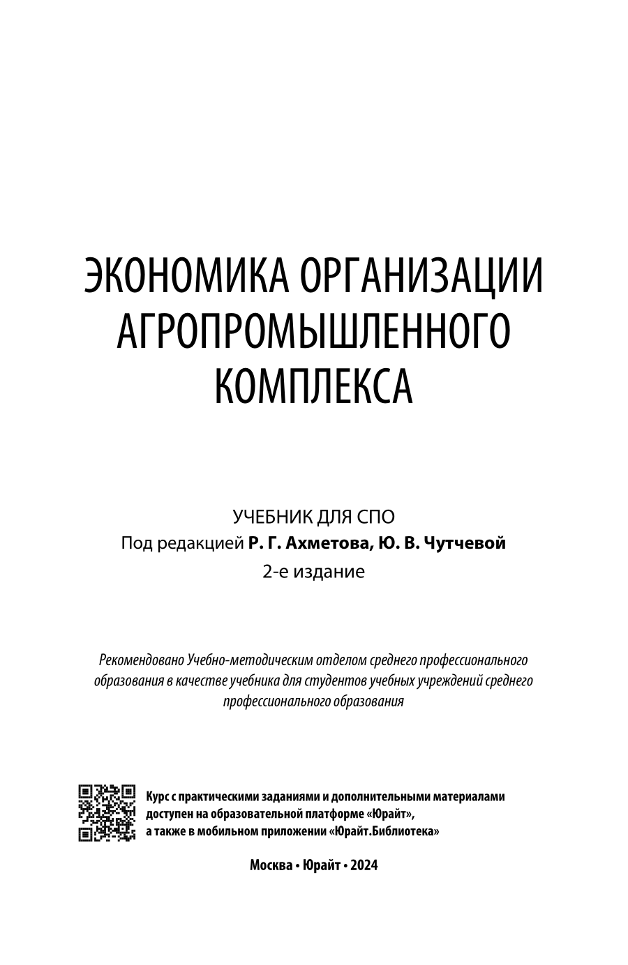 Экономика организации агропромышленного комплекса 2-е изд. Учебник для СПО (Юлия Васильевна Чутчева); ЮРАЙТ, 2023