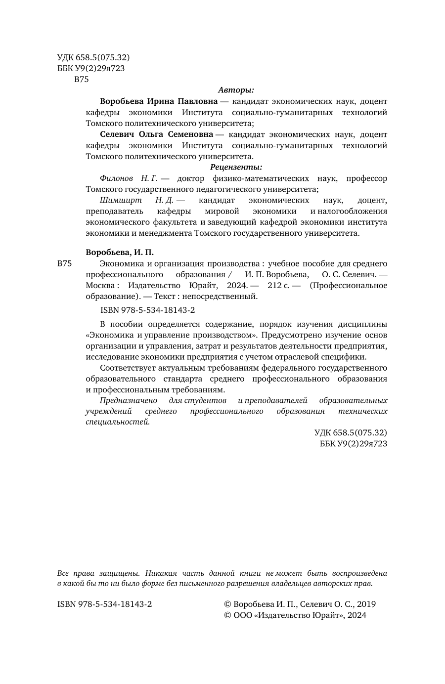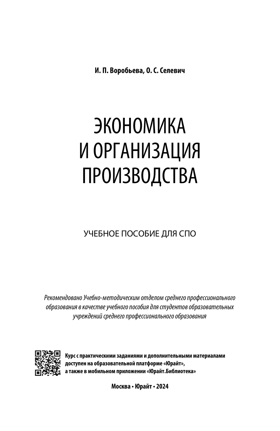 Экономика и организация производства. Учебное пособие для СПО (Ольга Семеновна Селевич); ЮРАЙТ, 2023