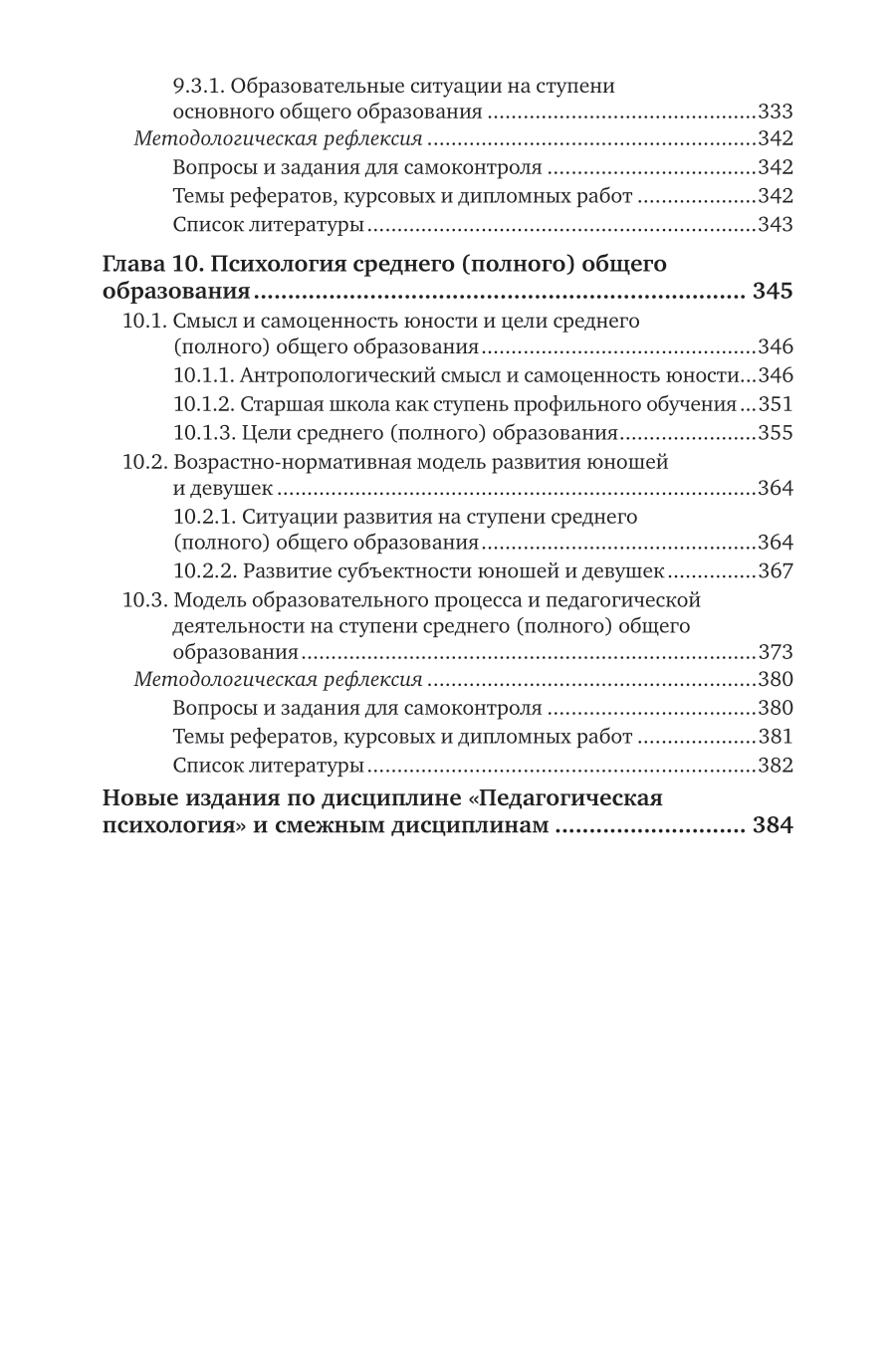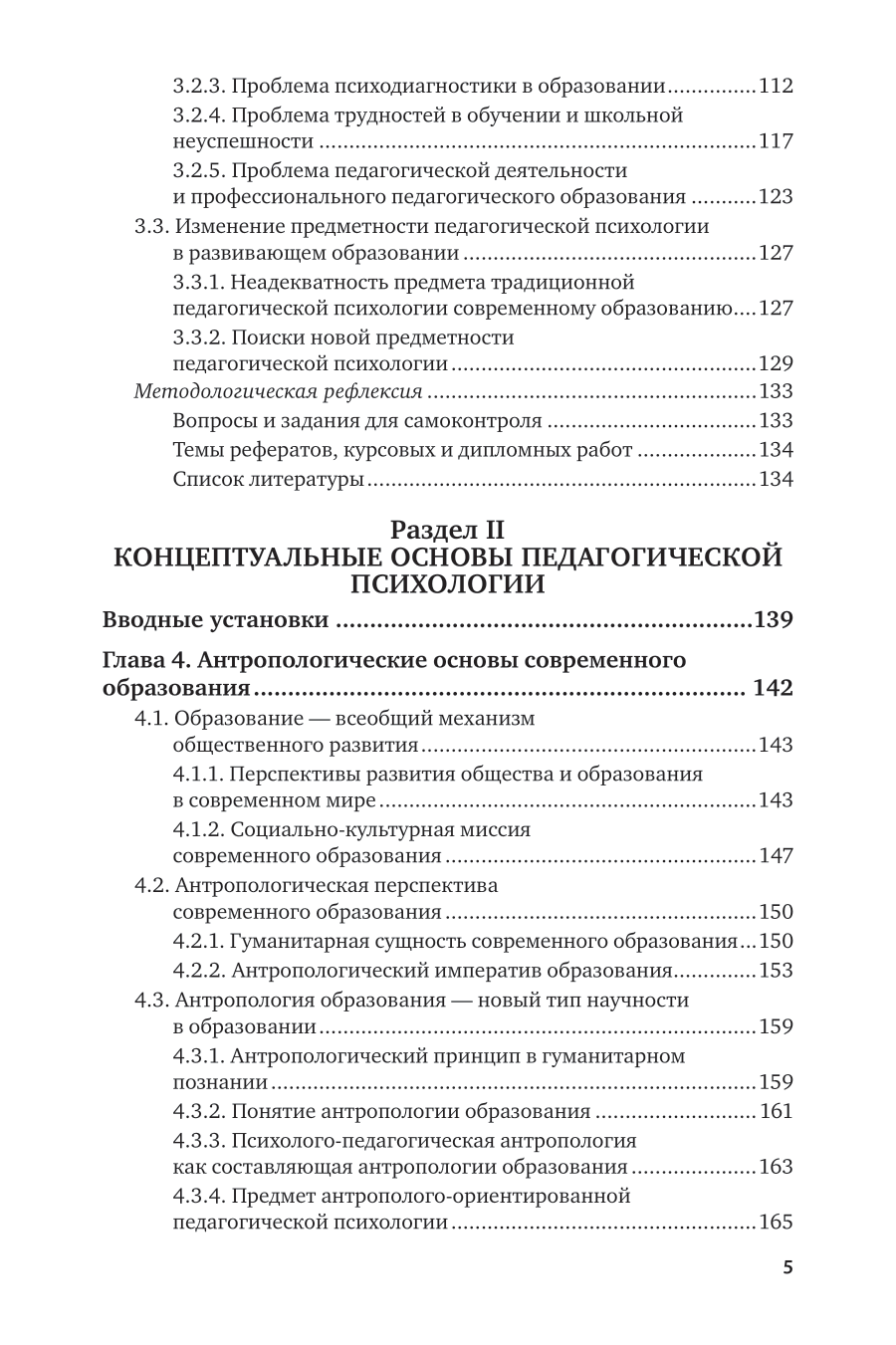 В учебнике освещены вопросы развития и современного состояния зарубежной и отечественной педагогической психологии; обоснована необходимость разработки антропологии образования и особого образовательного знания - комплексного знания об образовании как всеобщей культурно-исторической форме становения и развития сущностных сил человека, обретения им образа человеческого во времени истории и в пространстве культуры. Излагаются вопросы онтологии развития человека в пространстве образования, рассматриваются проблема сопряженности ступеней развития и ступеней образования, понятие и строение возрастно-нормативной модели развития. Отдельный раздел учебника посвящен систематическому изложению психолого-педагогических условий и особенностей становления субъективной реальности человека на ступенях образования. Соответствует актуальным требованиям федерального государственного образовательного стандарта высшего образования. Для студентов высших учебных заведений, обучающихся по гуманитарным и педагогическим направлениям и специальностям.