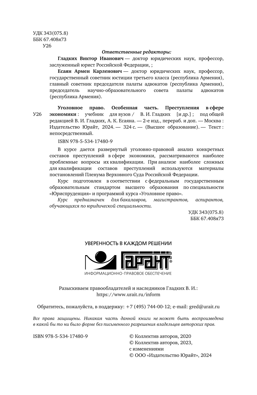 В курсе дается развернутый уголовно-правовой анализ конкретных составов преступлений в сфере экономики, рассматриваются наиболее проблемные вопросы их квалификации. При анализе наиболее сложных для квалификации составов преступлений используются материалы постановлений Пленума Верховного Суда Российской Федерации. Курс подготовлен в соответствии с Федеральным государственным образовательным стандартом высшего образования по специальности «Юриспруденция» и программой курса «Уголовное право». Курс предназначен для бакалавров, магистрантов, аспирантов, обучающихся по юридической специальности.