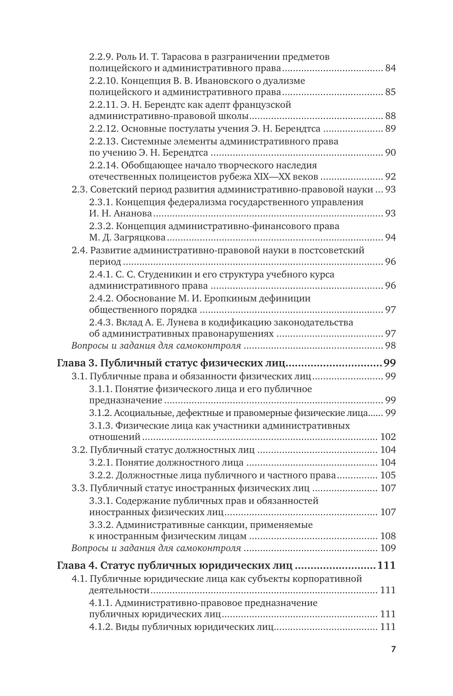 В данном учебном курсе подробно рассмотрены все атрибуты административно-правового статуса физических и юридических лиц, органов исполнительной власти, особых публичных органов, публичных коммерческих организаций, а также некоммерческих учреждений и организаций. Значительное внимание уделено публичной регламентации отдельных видов общественных объединений, в том числе и действующих в конфессиональной сфере. Должное внимание уделено особым административным режимам. Поскольку курс включает в себя доктринальное изложение понятийного аппарата учебного курса, он может быть полезен не только в процессе преподавательской деятельности, но и при проведении аналитических исследований и факультативных занятий со студентами бакалавриата и магистратуры, а также аспирантами. Применительно к темам Общей части настоящего курса целесообразно использовать учебное пособие А. С. Вишняковой (под ред. А. Б. Агапова) «Административное право. Практикум» (М.: Издательство Юрайт, 2023).