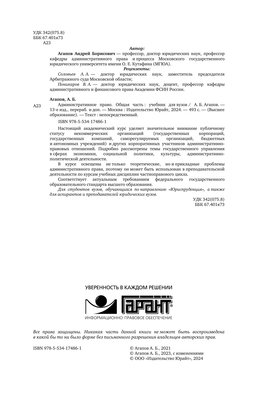Административное право. Общая часть 13-е изд. пер. и доп. Учебник для вузов (Андрей Борисович Агапов); ЮРАЙТ, 2023