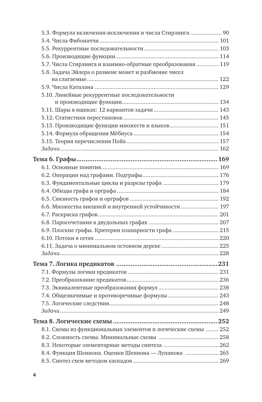 В курсе отражены разделы дискретной математики, предусматриваемые учебными программами классических, национальных исследовательских и технических университетов. При соблюдении необходимого уровня доказательности рассматриваются задачи, встречающиеся в инженерной практике, для формализации которых необходимы математические модели дискретной математики - теоретико-множественные, комбинаторно-логические, автоматные, графовые, функциональные, алгебраические и др. Существенное внимание уделено принципам построения алгоритмов решения задач дискретной математики на базе известных моделей вычислений (рекурсия, ветвления и ограничения и т. п.) и оценкам их сложности в контексте общей теории сложности алгоритмов. По каждой теме даны задачи и теоретические упражнения. Соответствует актуальным требованиям федерального государственного образовательного стандарта высшего образования. Для студентов, слушателей факультетов повышения квалификации, специалистов, преподавателей и программистов, использующих методы дискретной математики.