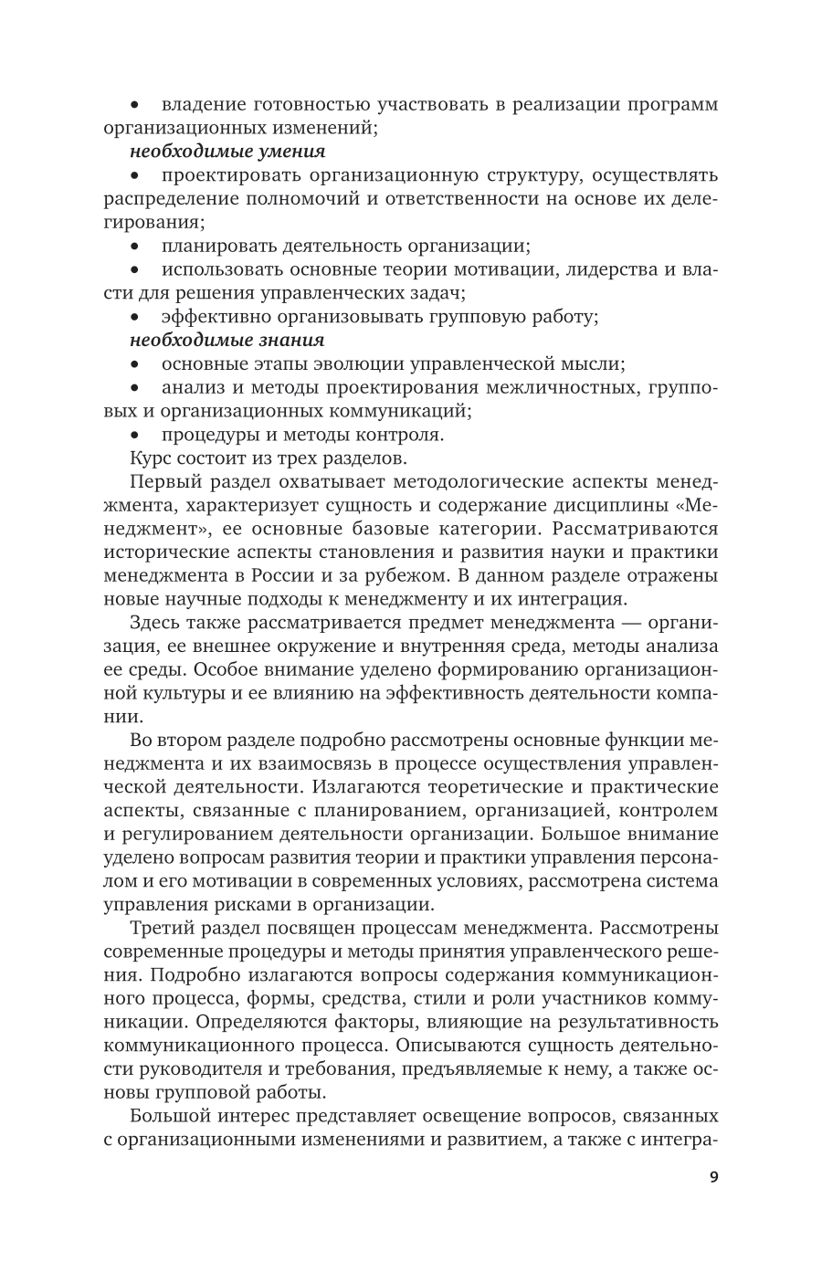 Современное развитие экономики требует подготовки профессионалов, которые владеют навыками ведения хозяйства в условиях развитого рынка и обладают знаниями об управлении организациями. На решение этой задачи и направлено изучение дисциплины «Менеджмент». Предлагаемый курс охватывает все типовые разделы данной дисциплины; освоив его, студенты научатся решать реальные проблемы, стоящие перед организациями в условиях современной экономики. Авторы представили достижения различных стран, школ и направлений. Материал хорошо структурирован и дает комплексное представление о базовых понятиях, категориях и процессах менеджмента. Соответствует актуальным требованиям федерального государственного образовательного стандарта среднего профессионального образования и профессиональным требованиям. Для студентов образовательных учреждений среднего профессионального образования.