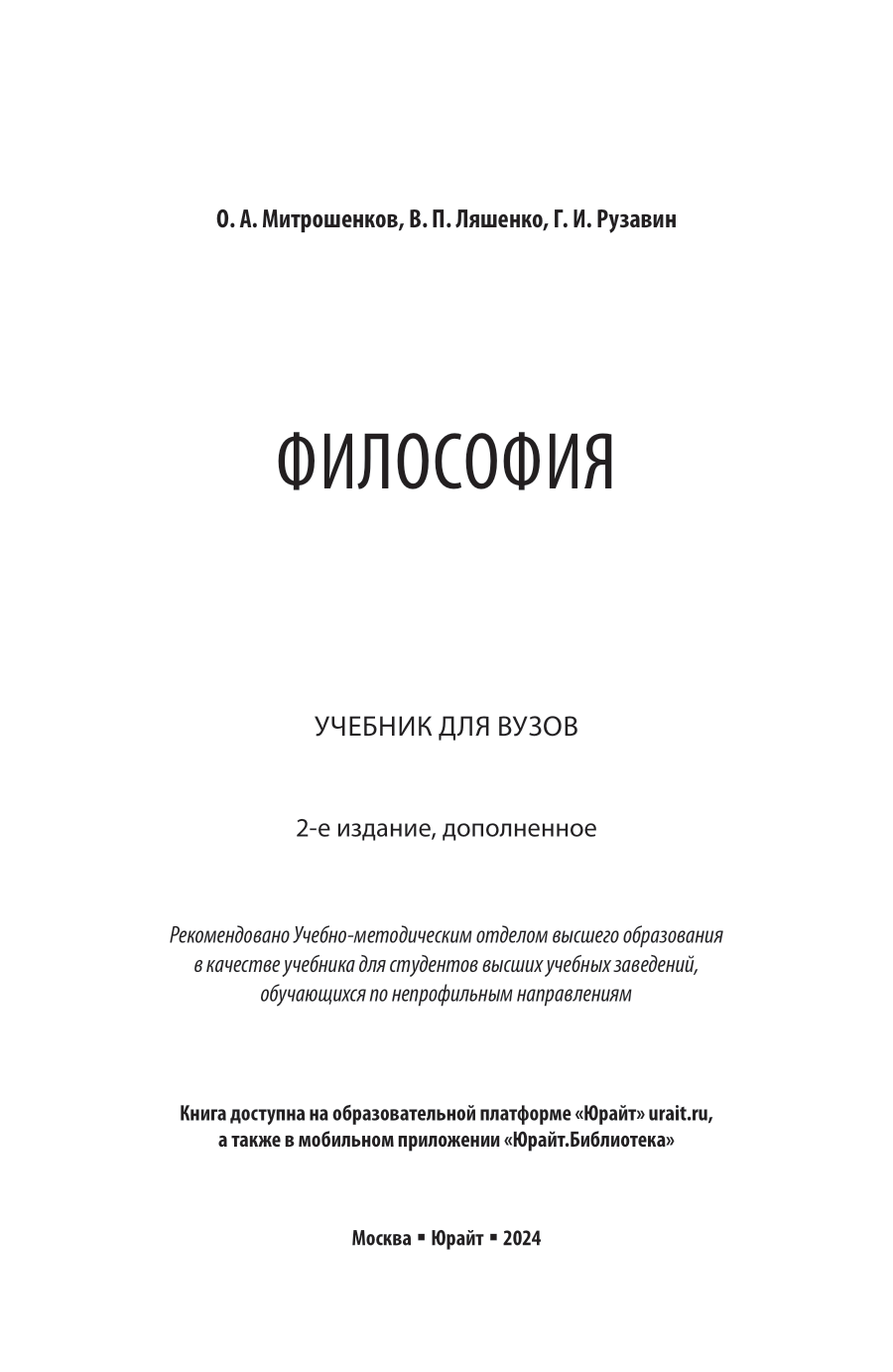 Философия 2-е изд. Учебник для вузов (Митрошенков Олег Александрович; Ляшенко Виктор Петрович; Рузавин Георгий Иванович), 2024