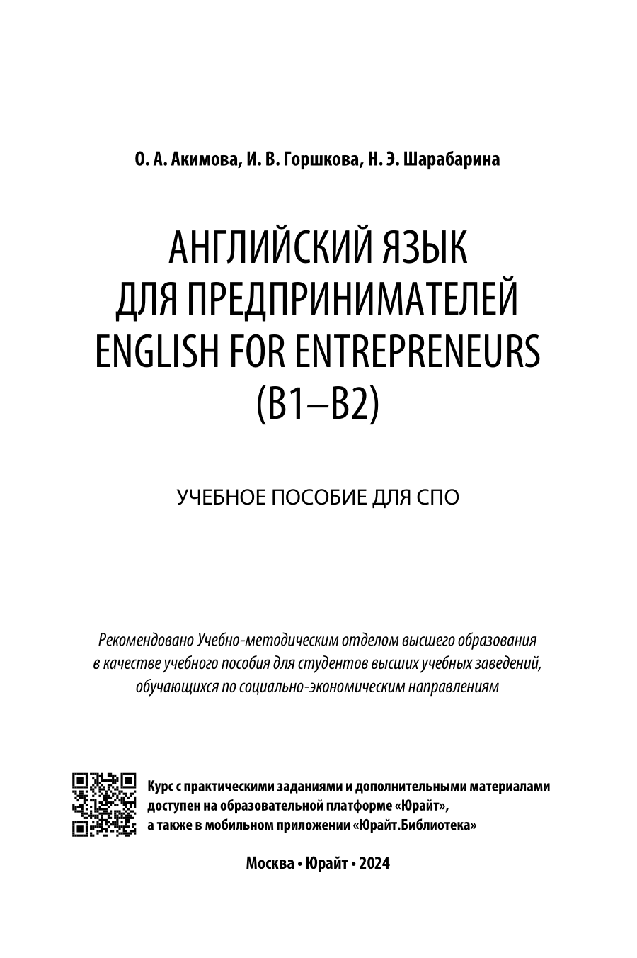 Английский язык для предпринимателей. English for entrepreneurs (B1-B2). Учебное пособие для СПО (Ольга Александровна Акимова); ЮРАЙТ, 2023