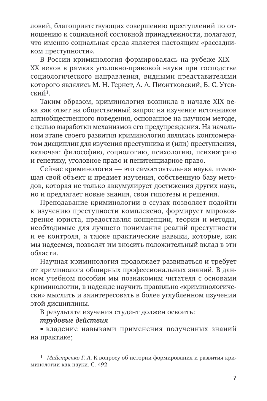В курсе рассматриваются предмет и содержание криминологии как науки, методика криминологических исследований, механизм преступного поведения, количественные и качественные характеристики преступности, ее детерминации, причинности, изменения преступности. Раскрывается содержание борьбы с преступностью. Соответствует актуальным требованиям ФГОС. Для обучающихся по юридическим специальностям СПО.