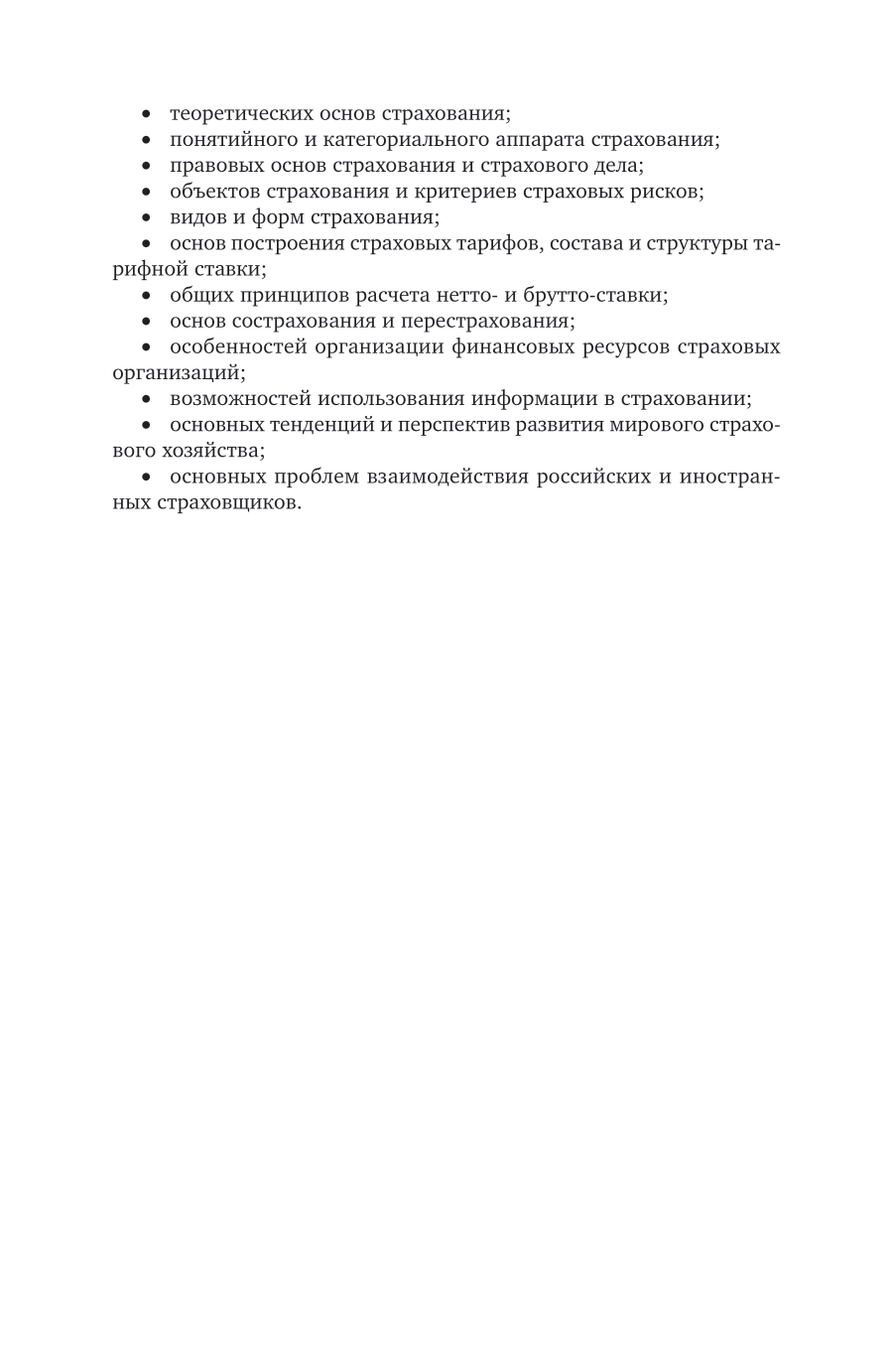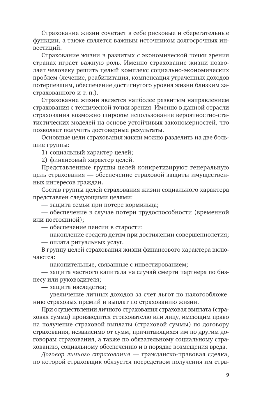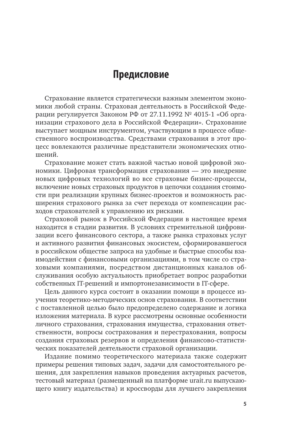 В учебнике представлены теоретико-методические основы страхования. Рассмотрены основные особенности личного страхования, страхования имущества, страхования ответственности, вопросы сострахования и перестрахования, вопросы создания страховых резервов и определения финансово-статистических показателей деятельности страховой организации. Издание помимо теоретического материала также содержит примеры решения типовых задач, задачи для самостоятельного решения, для закрепления навыков проведения актуарных расчетов, тестовый материал и кроссворды для лучшего закрепления теоретических знаний, а также словарь терминов, используемых в страховании.