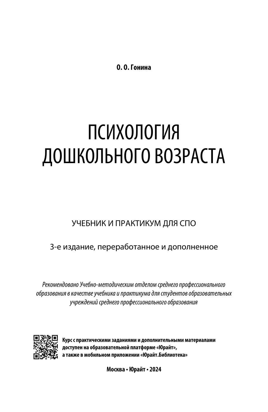 Психология дошкольного возраста 3-е изд. пер. и доп. Учебник и практикум для СПО (Ольга Олеговна Гонина); ЮРАЙТ, 2023