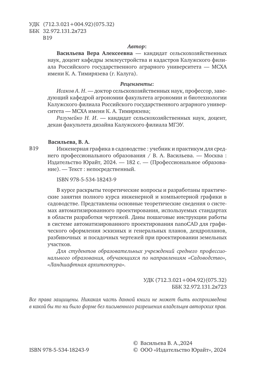 Инженерная графика в садоводстве. Учебник и практикум для СПО (Вера Алексеевна Васильева); ЮРАЙТ, 2024