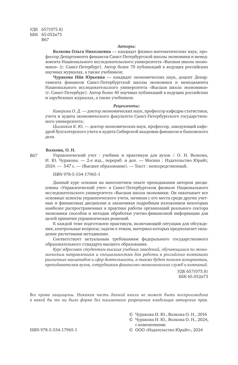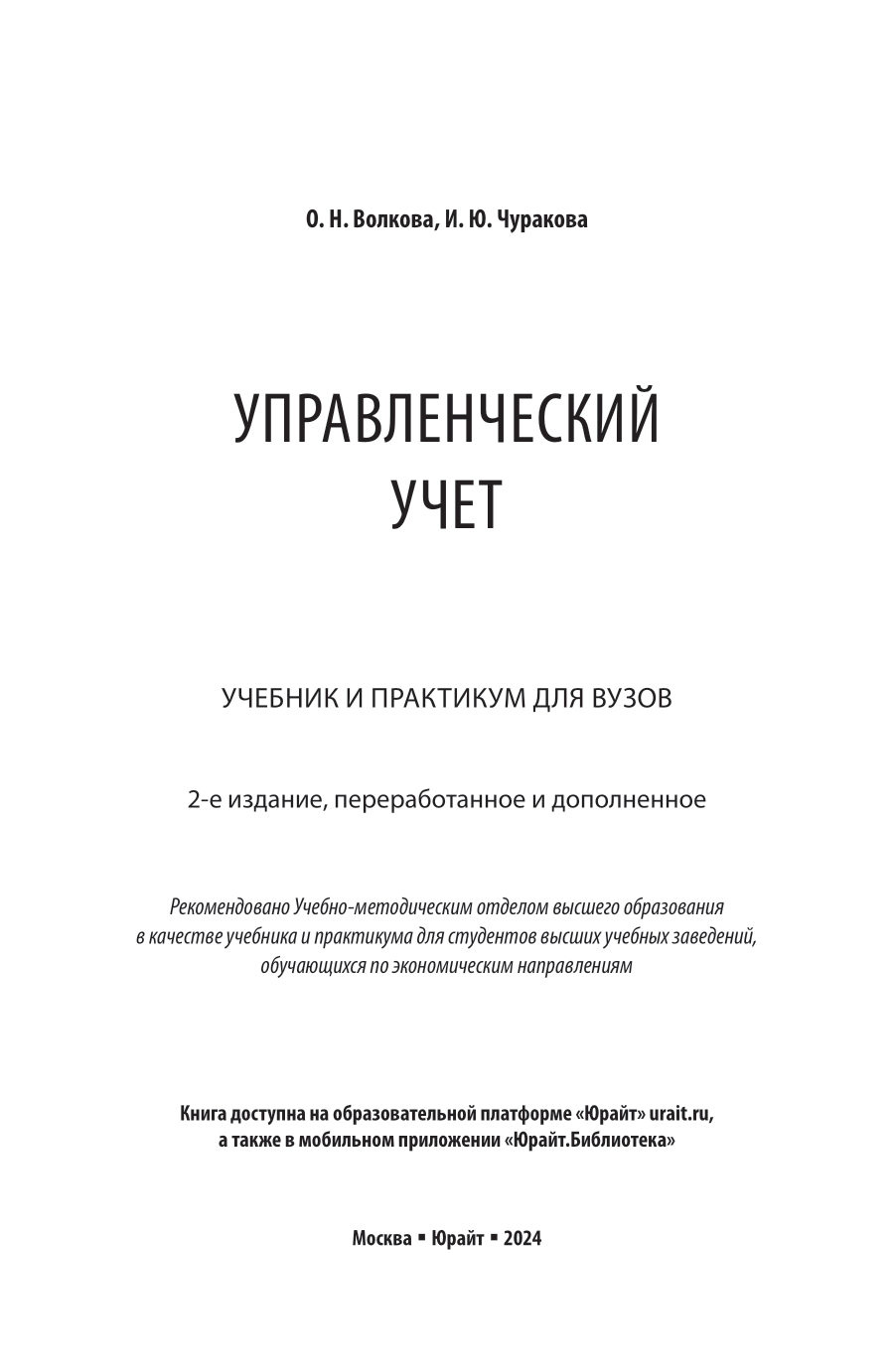 Управленческий учет 2-е изд. пер. и доп. Учебник и практикум для вузов (Ольга Николаевна Волкова); ЮРАЙТ, 2024