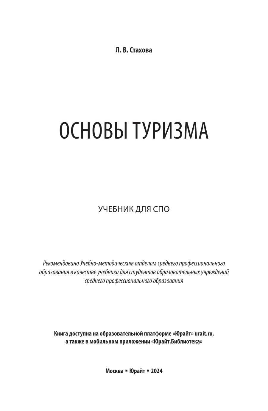 Основы туризма. Учебник для СПО (Людмила Вячеславовна Стахова); ЮРАЙТ, 2024