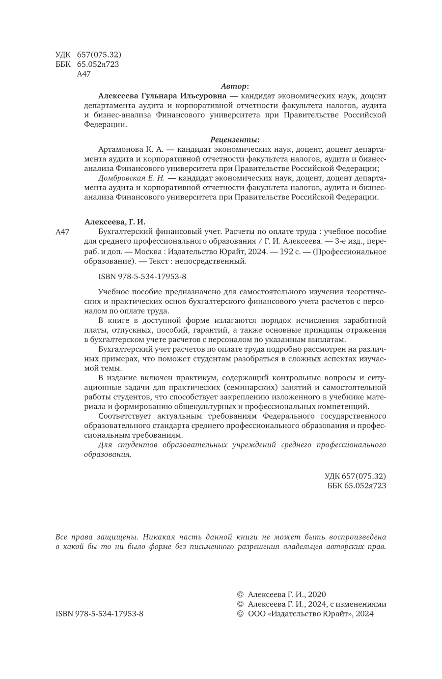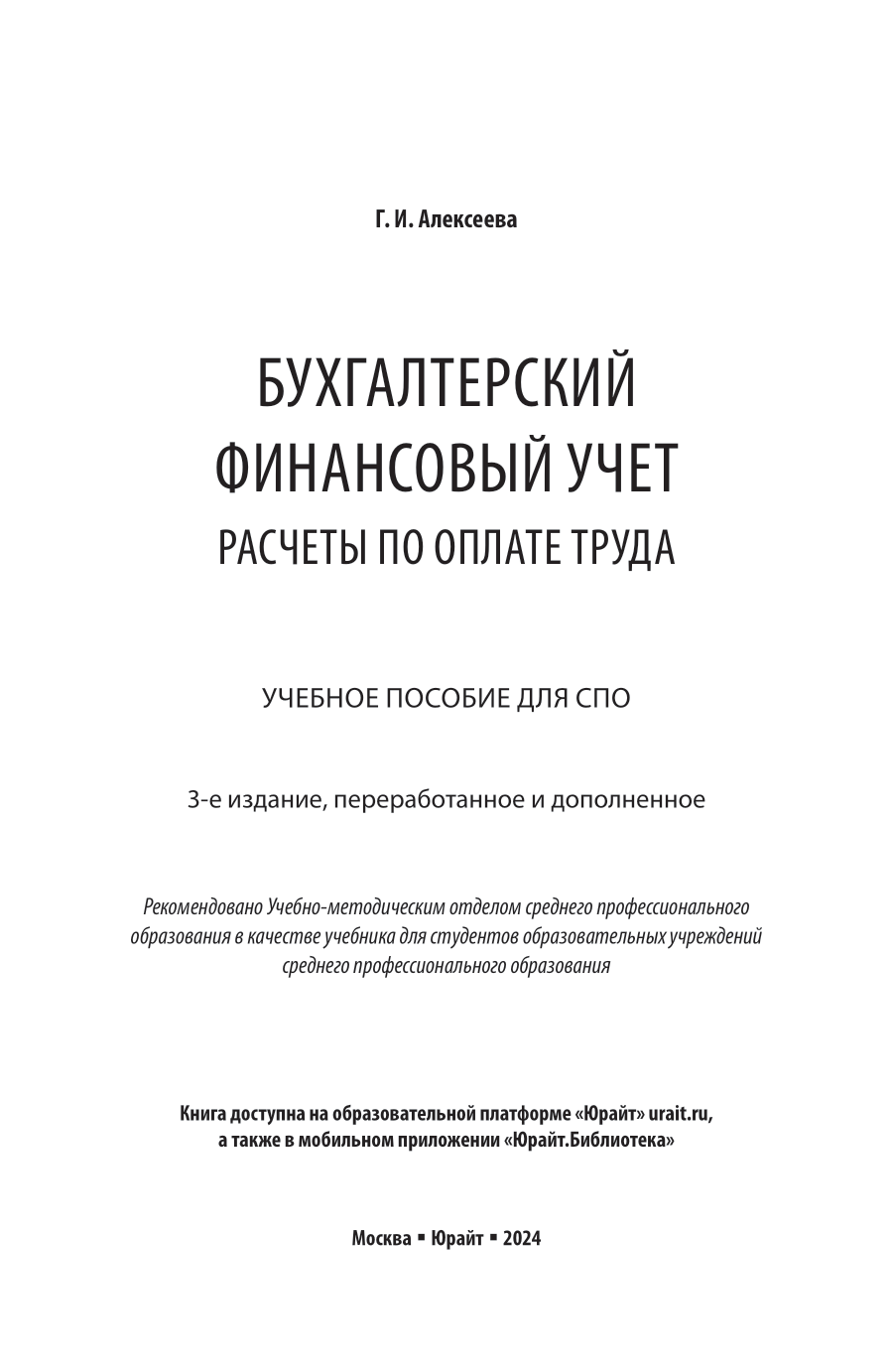 Бухгалтерский финансовый учет. Расчеты по оплате труда 3-е изд. пер. и доп. Учебник для СПО (Гульнара Ильсуровна Алексеева); ЮРАЙТ, 2024