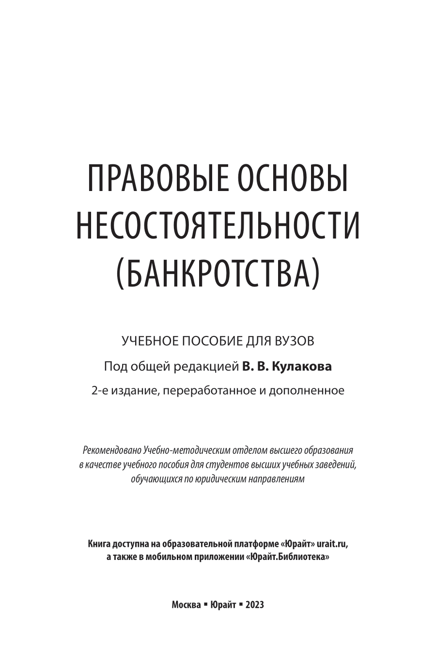 Правовые основы несостоятельности (банкротства) 2-е изд. пер. и доп. Учебное пособие для вузов (Алексей Янович Курбатов); ЮРАЙТ, 2024