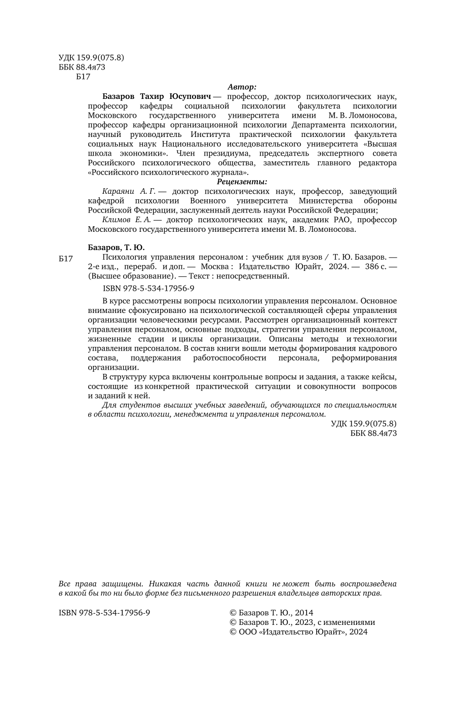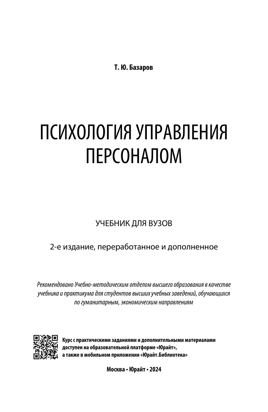 Психология управления персоналом 2-е изд. пер. и доп. Учебник для вузов (Тахир Юсупович Базаров); ЮРАЙТ, 2023