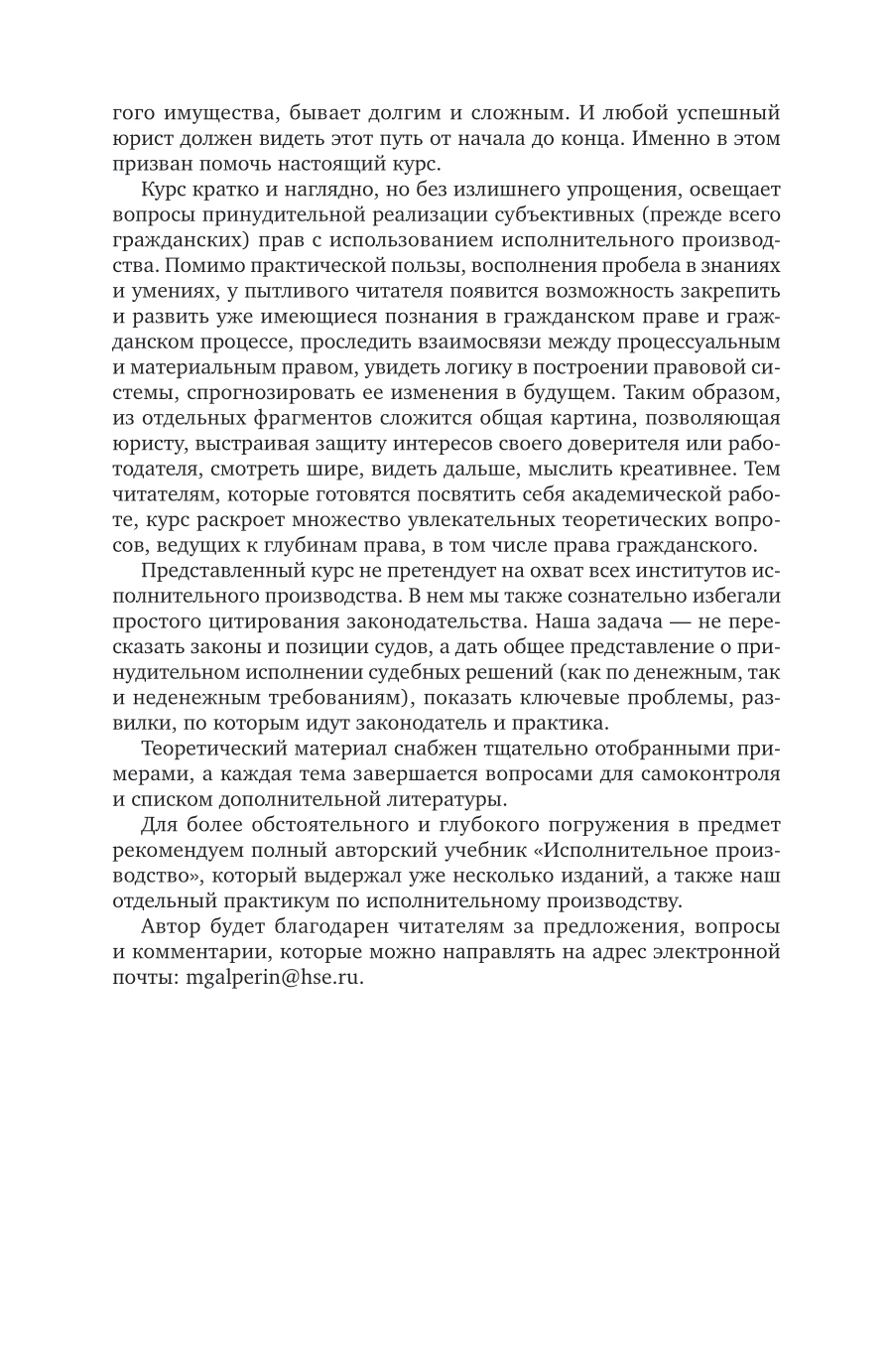 В курсе кратко и наглядно освещены вопросы принудительной реализации гражданских прав с использованием исполнительного производства. С помощью курса у читателя появится возможность закрепить и развить уже имеющиеся познания в частном праве, проследить взаимосвязи между процессуальными и материально-правовыми институтами. Таким образом, из отдельных фрагментов сложится общая картина, позволяющая юристу, выстраивая защиту интересов своего доверителя или работодателя, смотреть шире, видеть дальше, мыслить креативнее. Тем читателям, которые готовятся посвятить себя академической работе, курс раскроет множество увлекательных теоретических вопросов, ведущих к глубинам гражданского права и судопроизводства. Соответствует актуальным требованиям Федерального государственного образовательного стандарта высшего образования. Предназначено для студентов высших учебных заведений, обучающихся по юридическим направлениям.
