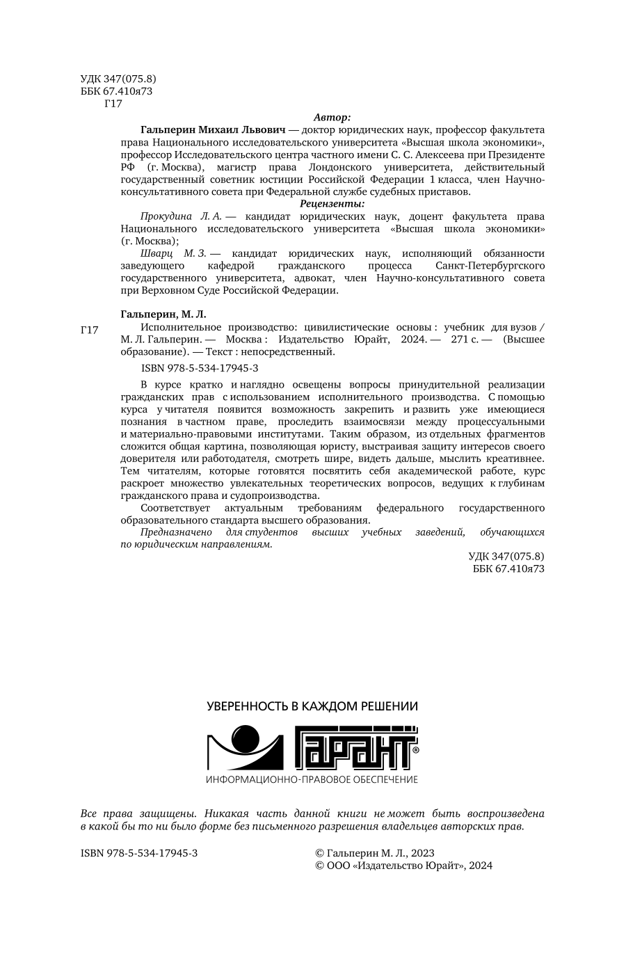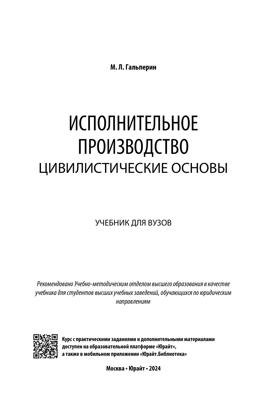 Исполнительное производство: цивилистические основы. Учебник для вузов (Михаил Львович Гальперин); ЮРАЙТ, 2023