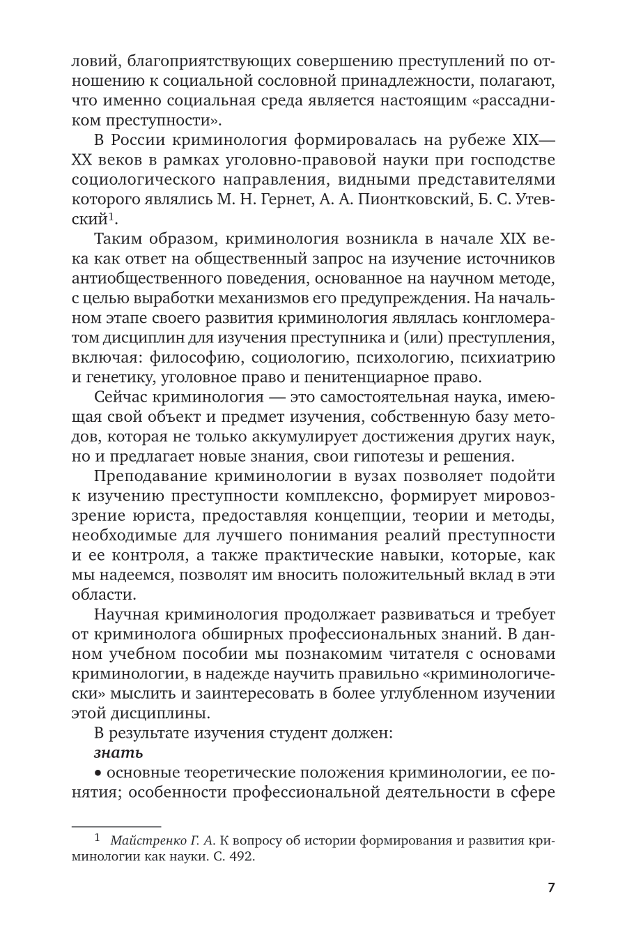 В предлагаемом курсе последовательно рассмотрены преступность, ее причины и условия; методология и методы криминологических исследований; личность преступника и потерпевшего; основные направления и особенности предупредительной деятельности. Отдельно представлены наиболее опасные и проблемные виды преступности с анализом их современного состояния, динамики, тенденций. В настоящем издании учтено новейшее законодательство, приводятся необходимые статистические данные. Соответствует актуальным требованиям федерального государственного образовательного стандарта высшего образования. Для студентов, аспирантов, преподавателей юридических вузов и факультетов, практических работников правоохранительных органов.