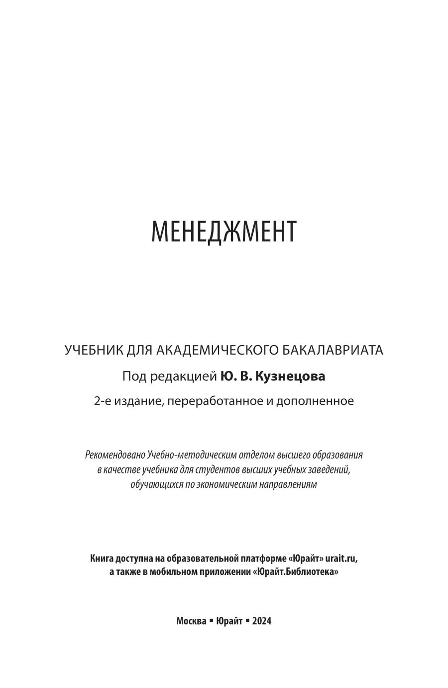 Менеджмент 2-е изд. пер. и доп. Учебник для академического бакалавриата (Елена Михайловна Анохина); ЮРАЙТ, 2024