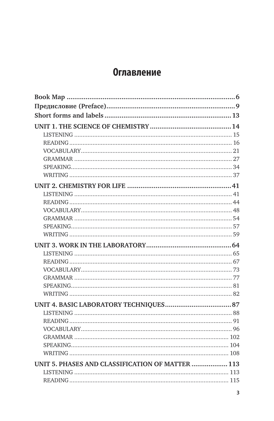 Курс предназначен для обучения английскому языку студентов вузов химического профиля, а также более широкого круга изучающих английский язык, интересующихся вопросами химии. Цель курса - развитие англоязычной коммуникативной компетенции студентов-химиков до уровня, необходимого для успешной коммуникации в академической и профессиональной сферах. Материал курса обеспечивает формирование умений академического и профессионального общения на английском языке в устной и письменной форме, способствует развитию лексических и грамматических навыков, а также совершенствованию навыков критического мышления. В курсе использованы материалы сайтов и документы профессиональных организаций, учебная литература, а также популярные и научные статьи в области химии. В учебнике рассматриваются как общенаучные, так и специальные темы, относящиеся к дисциплине «Общая химия». Соответствует актуальным требованиям федерального государственного образовательного стандарта среднего профессионального образования и профессиональным требованиям. Курс предназначен для студентов 1 и 2 курсов бакалавриата, обучающихся по направлению 04.03.01 «Химия» и владеющих английским языком на уровне В1 В2 согласно Общеевропейской классификации уровней языковой компетенции CEFR.