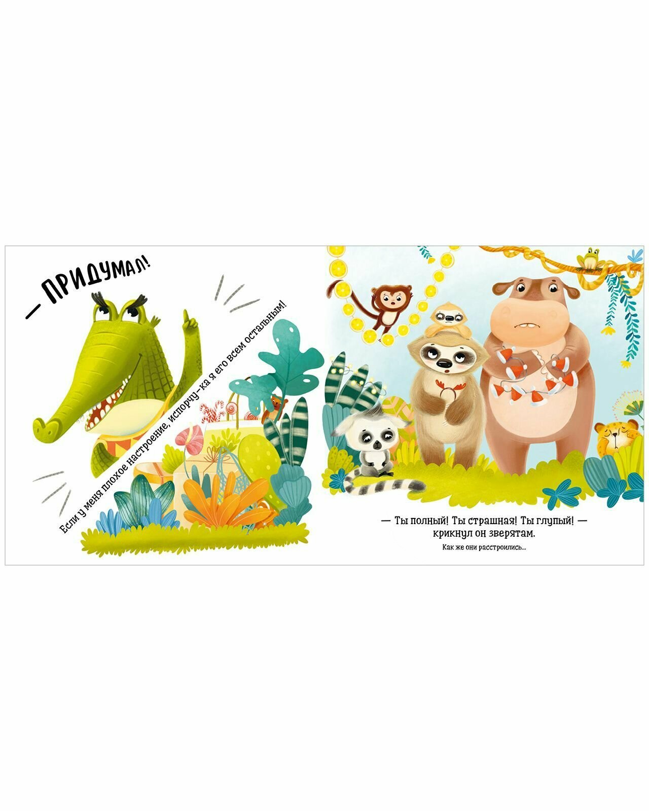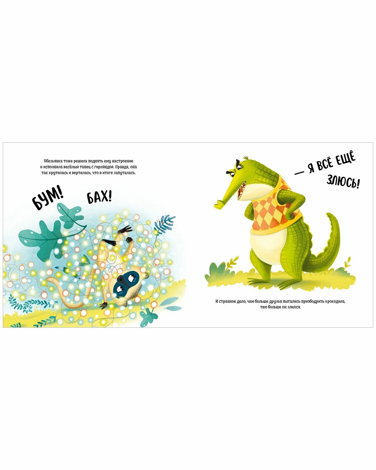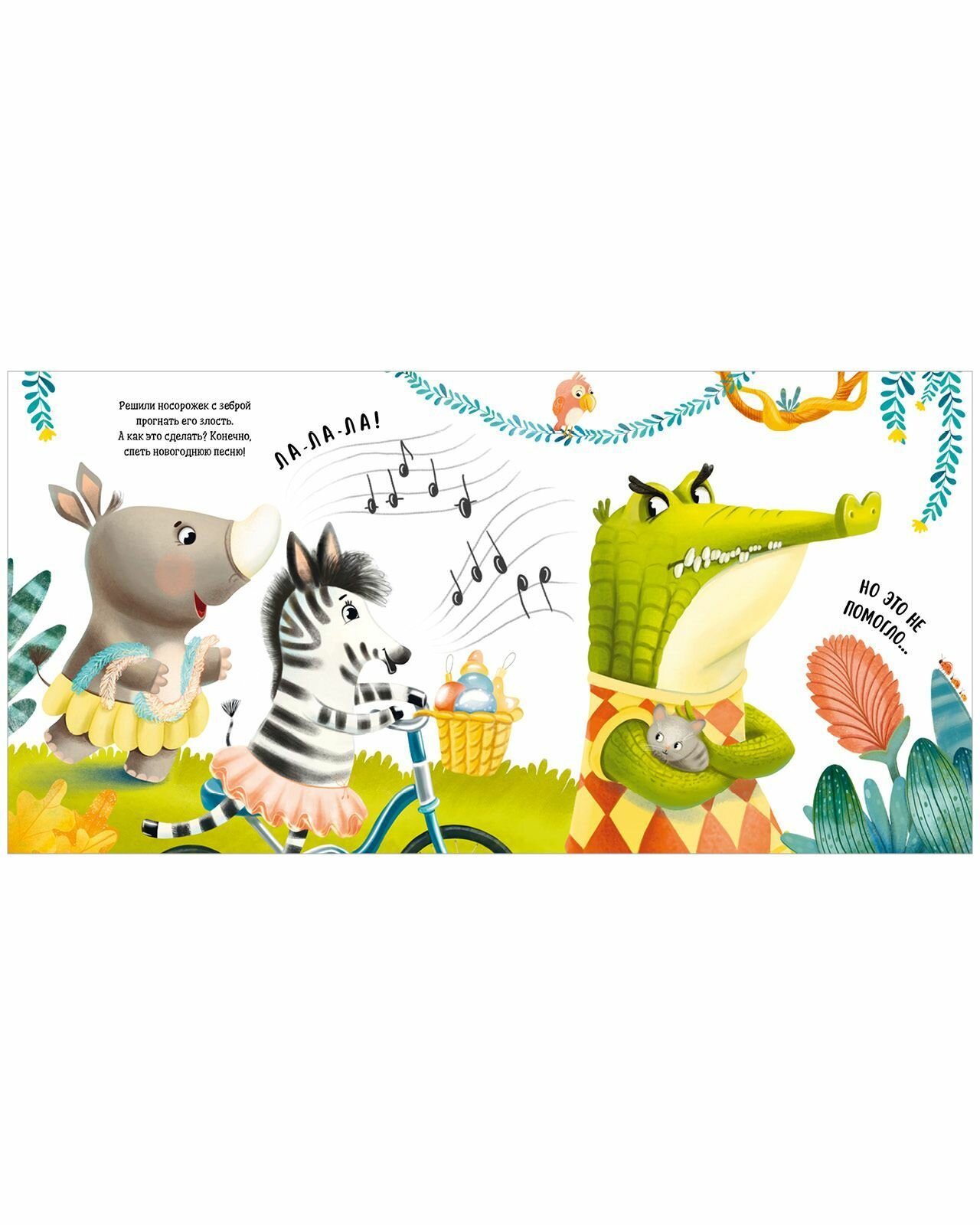 В джунглях все радостно готовятся к встрече Нового года: зверята украшают пальму, разучивают веселые песни, упаковывают подарки. Все, кроме крокодила. С самого утра он не в духе, и никому не удается поднять ему настроение. Сможет ли крокодил справиться со своими эмоциями и полюбить Новый год?