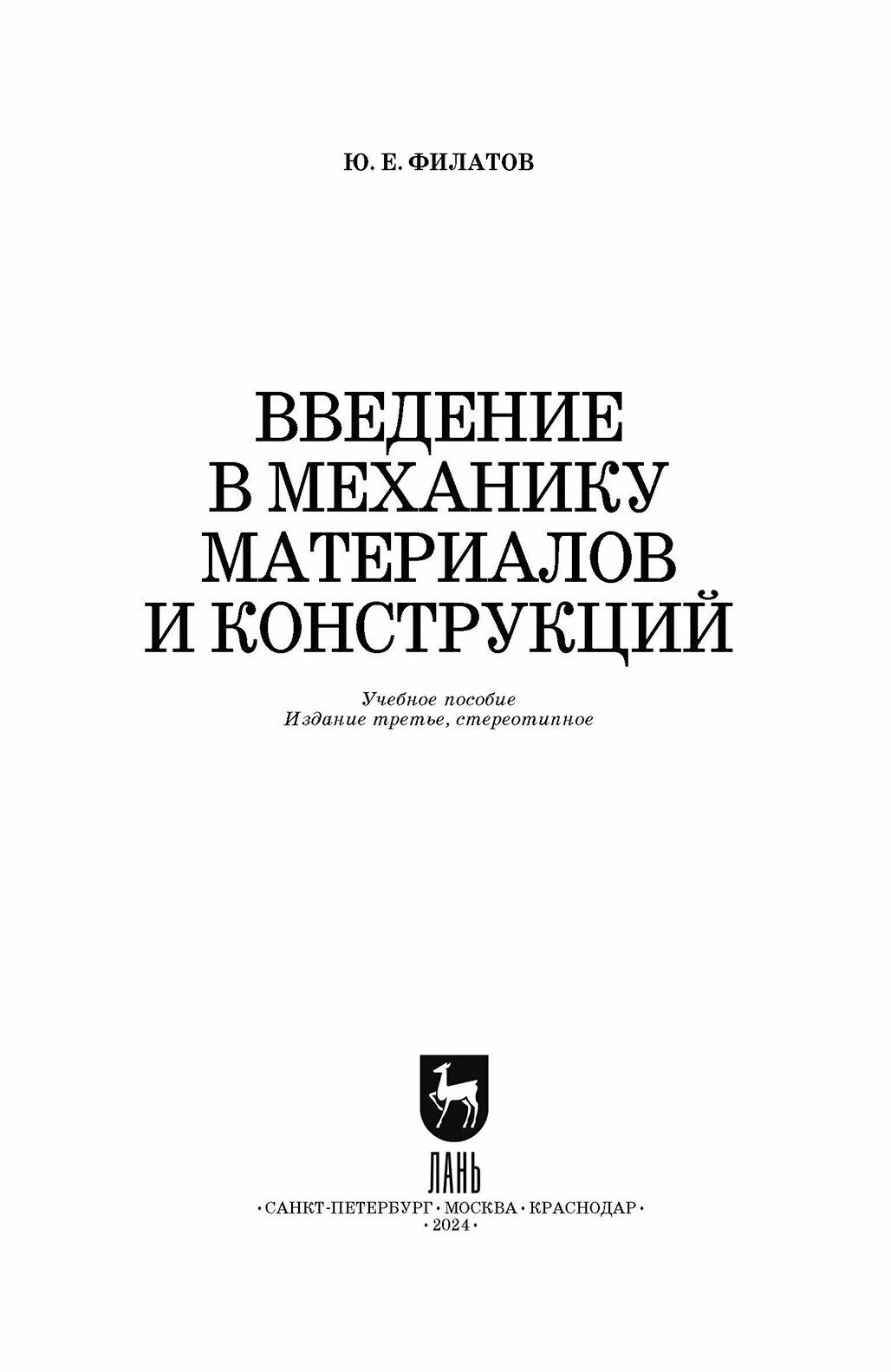 Введение в механику материалов и конструкций. Учебное пособие для СПО (Филатов Юрий Евгеньевич); Лань, 2021