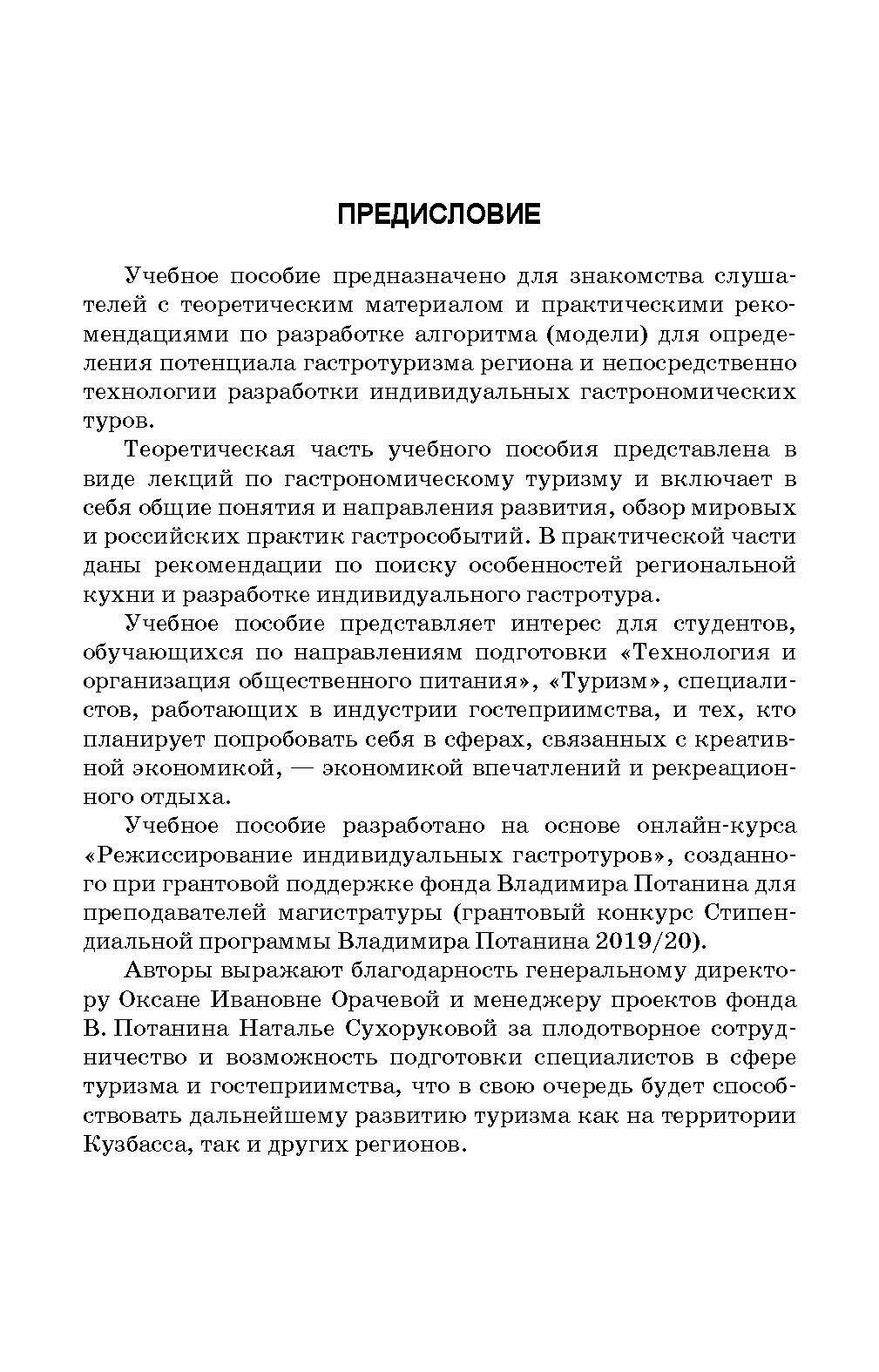 Учебное пособие предназначено для знакомства слушателей с теоретическим материалом и практическими рекомендациями по разработке алгоритма (модели) для определения потенциала гастротуризма региона и технологии разработки индивидуальных гастрономических туров. Материалом для написания учебного пособия явилась совокупность теоретических основ и собственного опыта и видения авторов. Соответствует современным требованиям Федерального государственного образовательного стандарта среднего профессионального образования и профессиональным квалификационным требованиям. Учебное пособие представляет интерес для обучающихся колледжей и техникумов по специальностям «Технология продукции общественного питания», «Организация обслуживания в общественном питании», «Туризм», специалистов, работающих в индустрии гостеприимства, и тех, кто планирует попробовать себя в сферах, связанных с креативной экономикой, - экономикой впечатлений и рекреационного отдыха.