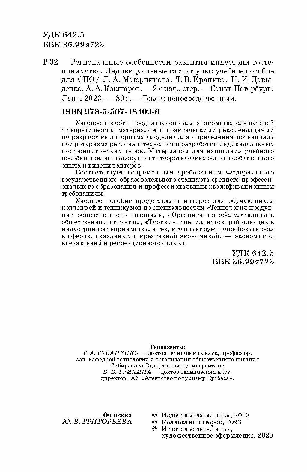 Региональные особенности развития индустрии гостеприимства. Индивидуальные гастротуры. Учебное пособие для СПО (А. А. Кокшаров); Издательство ЛАНЬ, 2023