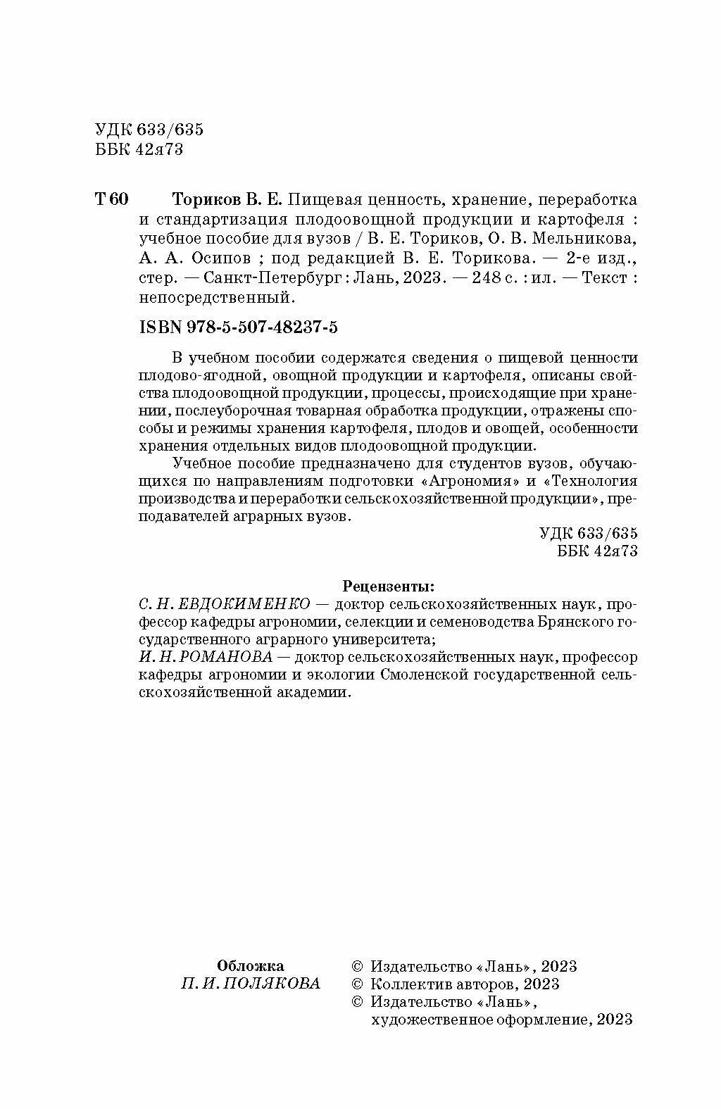 Пищевая ценность хранение переработка и стандартизация плодоовощной продукции и картофеля. Учебное пособие для вузов (О. В. Мельникова); Издательство ЛАНЬ, 2023